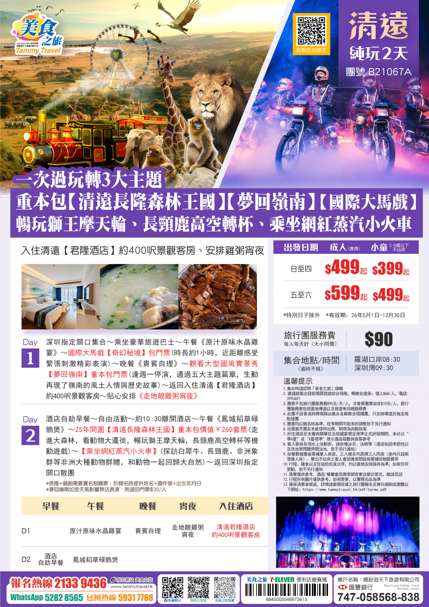 5.非香港集散一天團, 不列入旅遊業賠償基金及緊急援助保障。本公司強烈建議顧客出發前購買旅遊保險,以獲得更全面的旅遊保障。