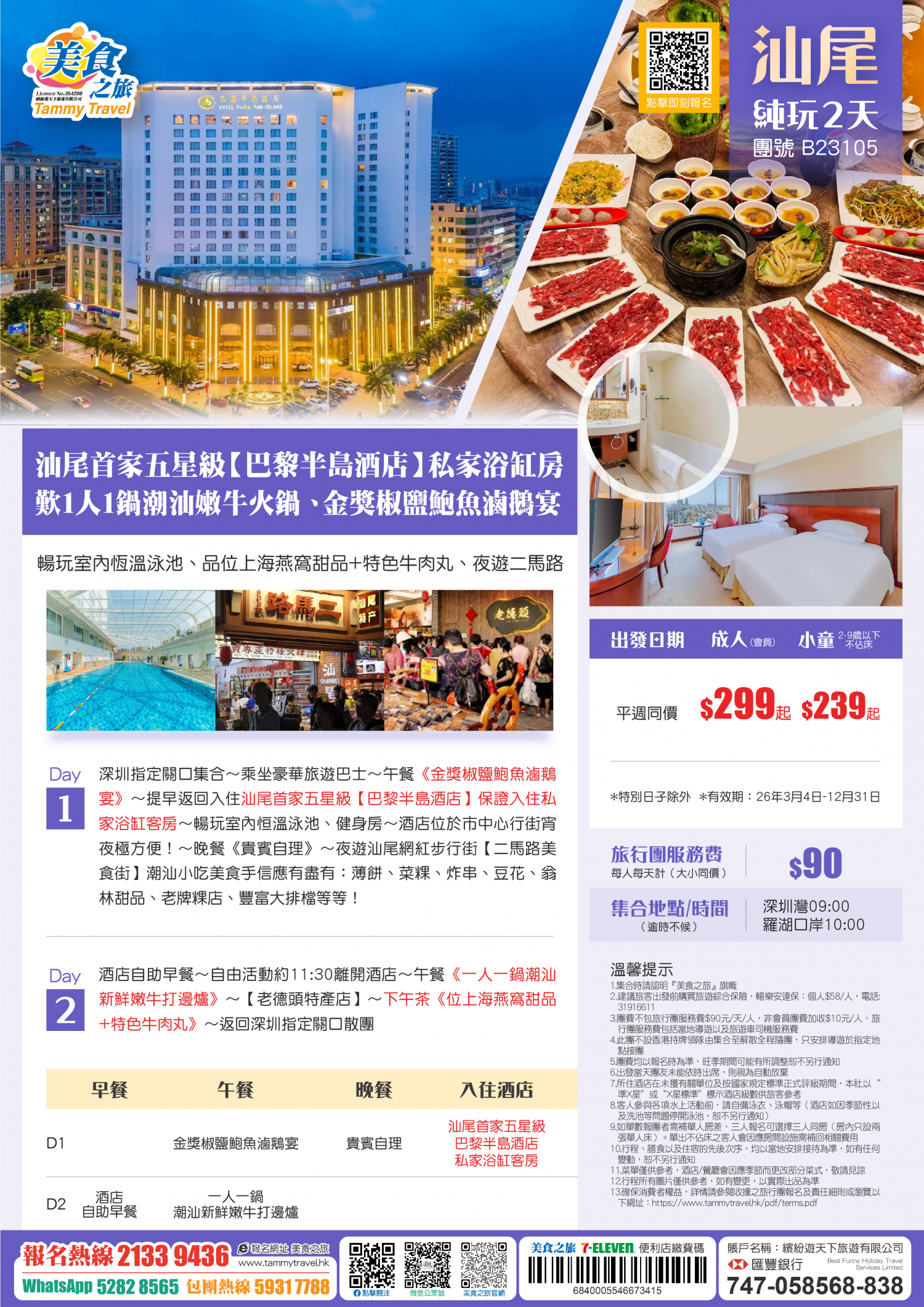 5.非香港集散一天團, 不列入旅遊業賠償基金及緊急援助保障。本公司強烈建議顧客出發前購買旅遊保險,以獲得更全面的旅遊保障。
