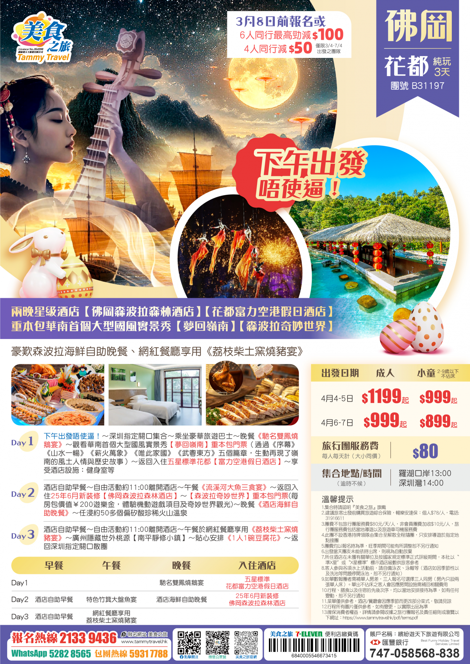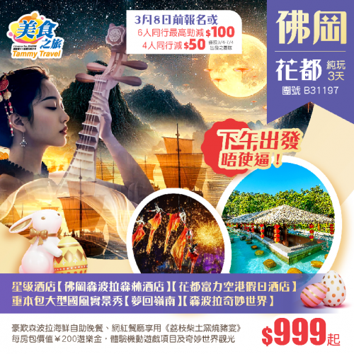 3.8前報短線復活節加班線/晚會系列即減$100/位
