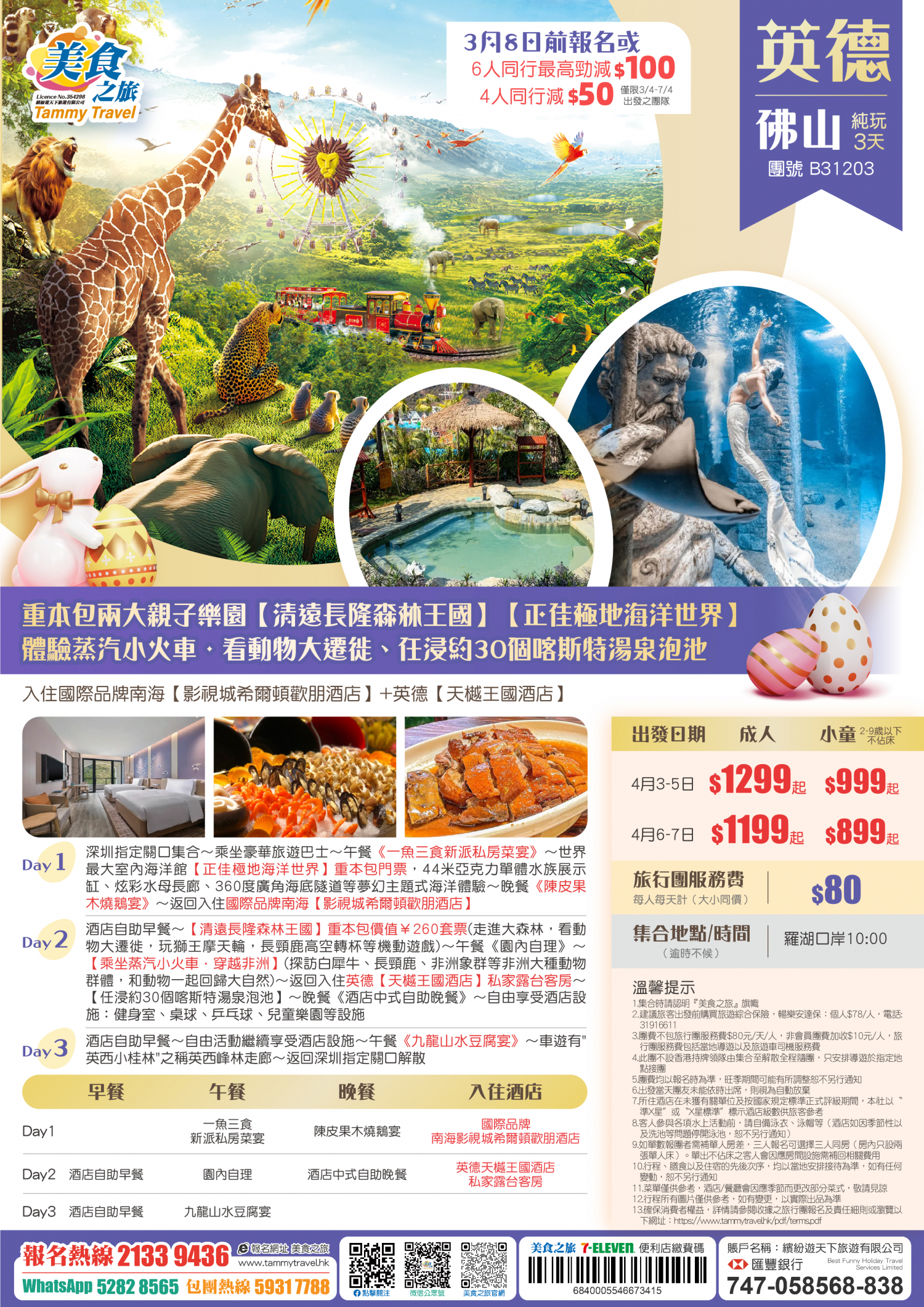 【26年復活節】重本包兩大親子樂園【清遠長隆森林王國】體驗蒸汽小火車·看動物大遷徙+【正佳極地海洋世界】、入住英德【天樾王國酒店】任浸約30個喀斯特湯泉泡池 純玩3天