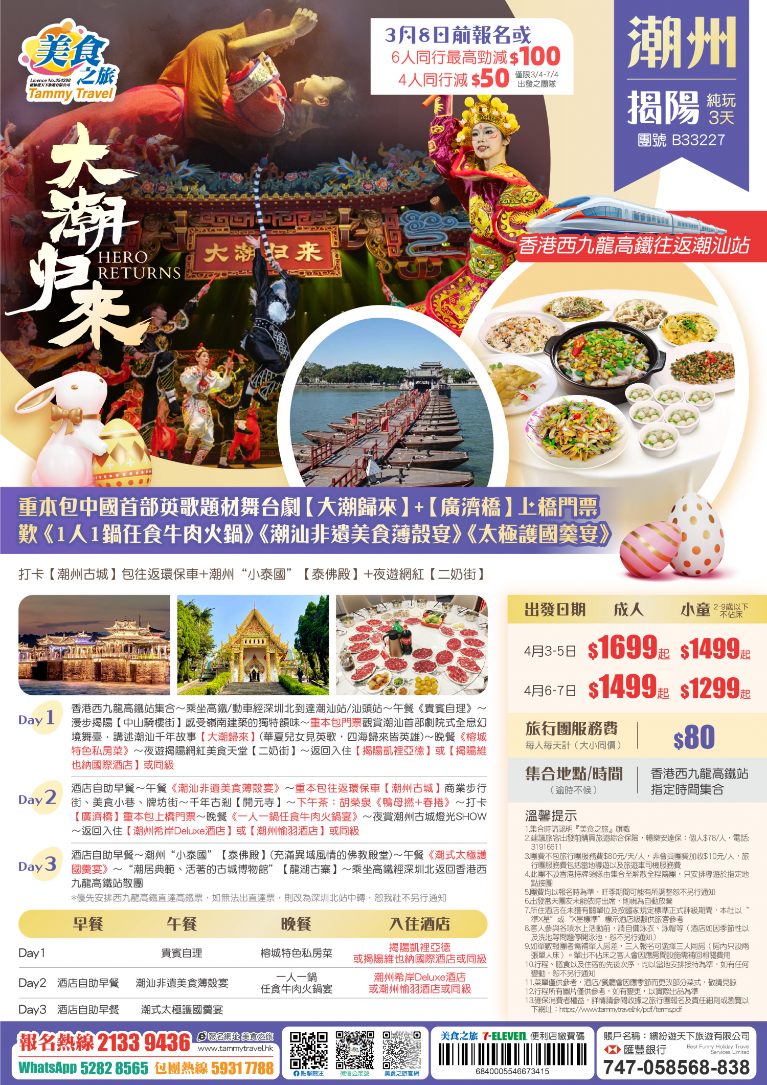 3.8前報短線復活節加班線/晚會系列即減$100/位