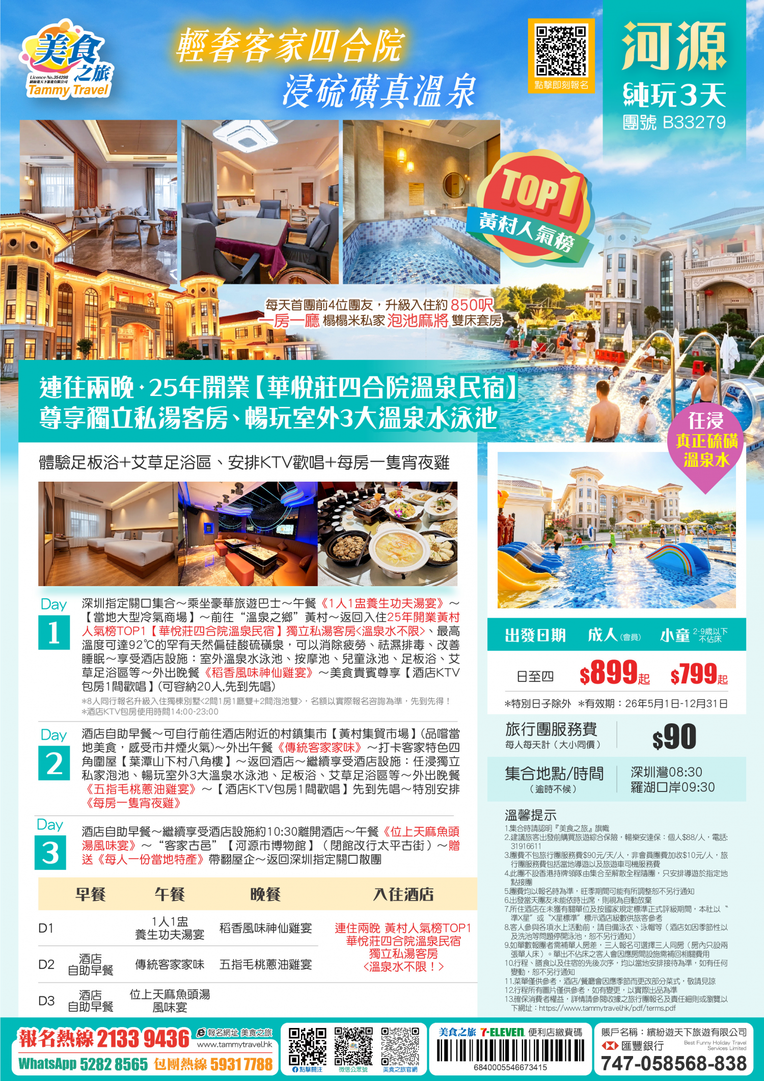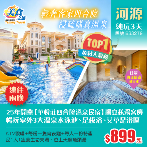 「黃村人氣榜TOP1」連住兩晚【華悅莊四合院溫泉民宿】獨立私湯房、暢玩室外3大溫泉水泳池、1間KTV歡樂時光、安排每房一隻宵夜雞+每人一份當地特產、品《1人1盅養生功夫湯》《位上天麻魚頭湯》純玩3天