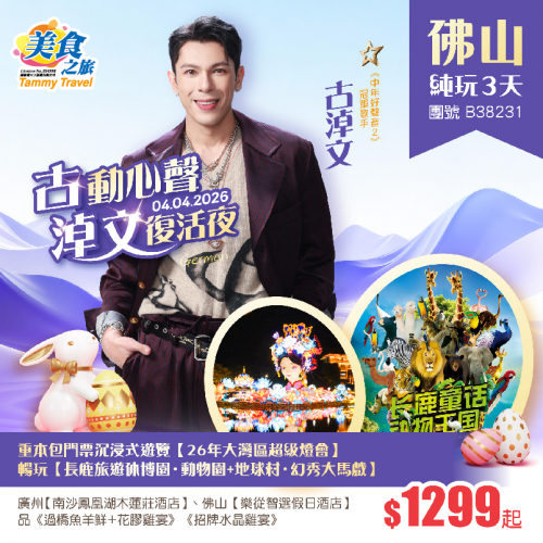 【26年古淖文復活節晚會】重本包門票沉浸式遊覽【26年大灣區超級燈會】、暢玩【長鹿旅遊休博園·動物園+幻秀大馬戲】、入住【南沙鳳凰湖木蓮莊酒店】、24年12月全新開業【樂從智選假日酒店】純玩3天