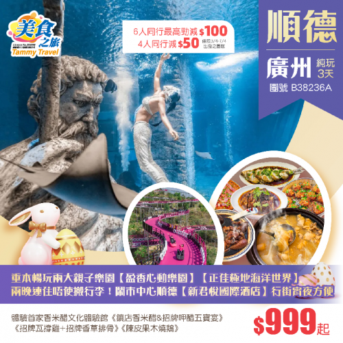 3.9後報短線復活節加班線/晚會系列4人同行優惠減$50