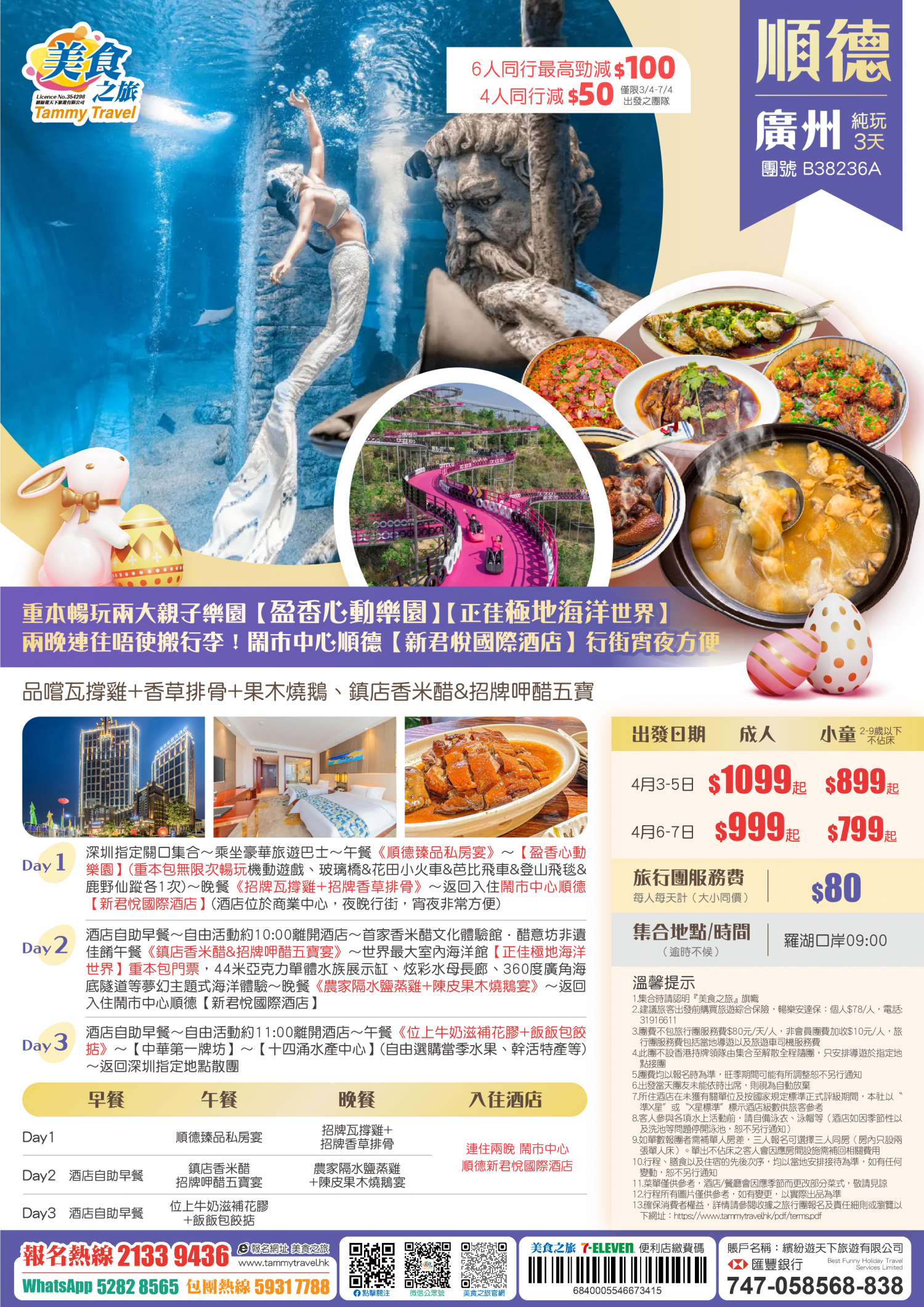 3.9後報短線復活節加班線/晚會系列6人同行最高勁減$100