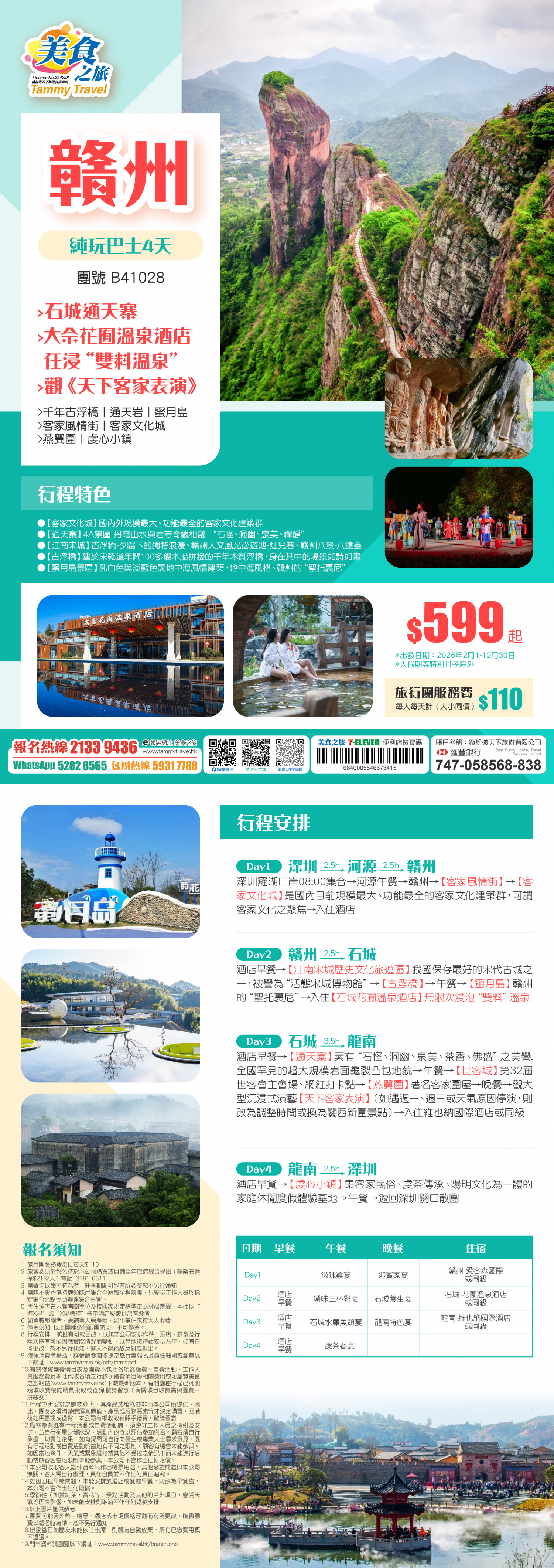 【純玩·贛州】石城通天寨賞通天“三絕”自然景觀丨【大佘花囿溫泉酒店】任浸“雙料溫泉”千年古浮橋丨通天岩丨蜜月島丨觀大型沉浸式演藝《天下客家表演》純玩4天巴士團