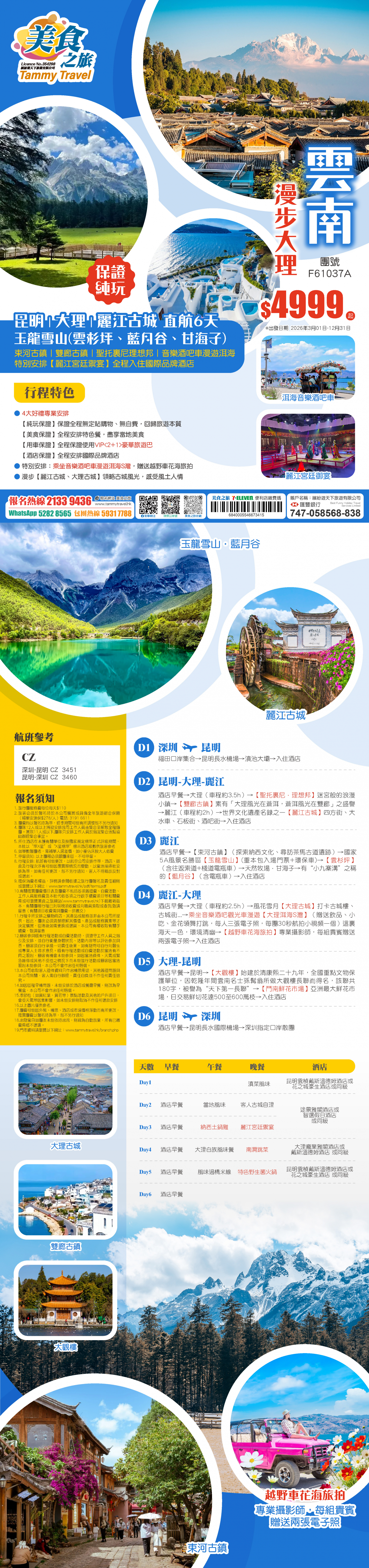 深圳機場往返【純玩·雲南】昆明丨大理丨麗江「《玉龍雪山》雲杉坪、藍月谷、甘海子」束河古鎮丨雙廊古鎮丨聖托裏尼理想邦丨音樂酒吧車漫遊洱海丨特別安排【麗江宮廷禦宴】全程國際品牌酒店 VIP2+1旅遊巴
