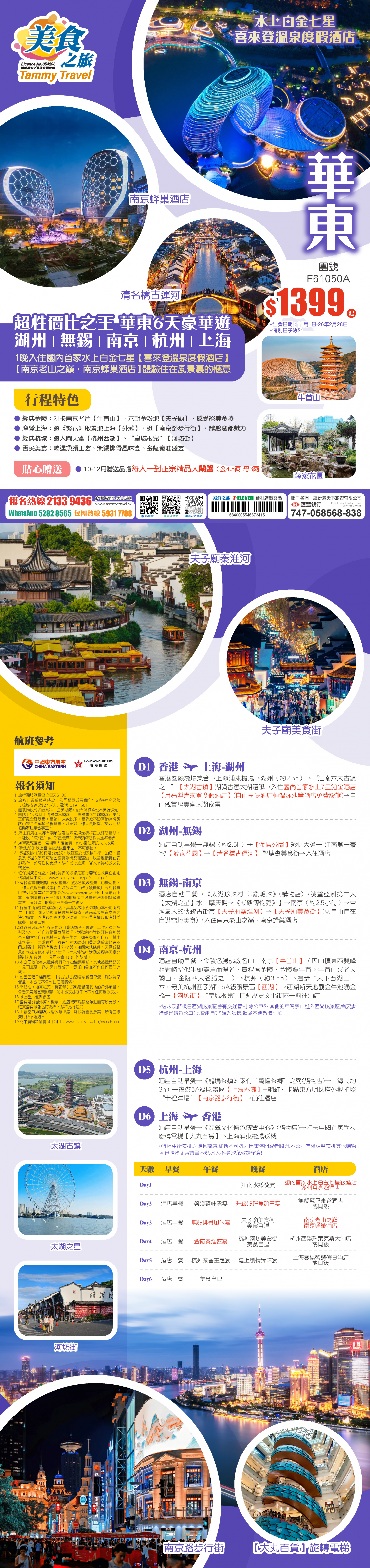 華東-超性價比之王<湖州丨無錫丨南京丨杭州丨上海>100%入住國內首家水上白金七星【喜來登溫泉度假酒店+南京老山之巔·南京蜂巢酒店】體驗住在風景裏的愜意 直航6天豪華遊