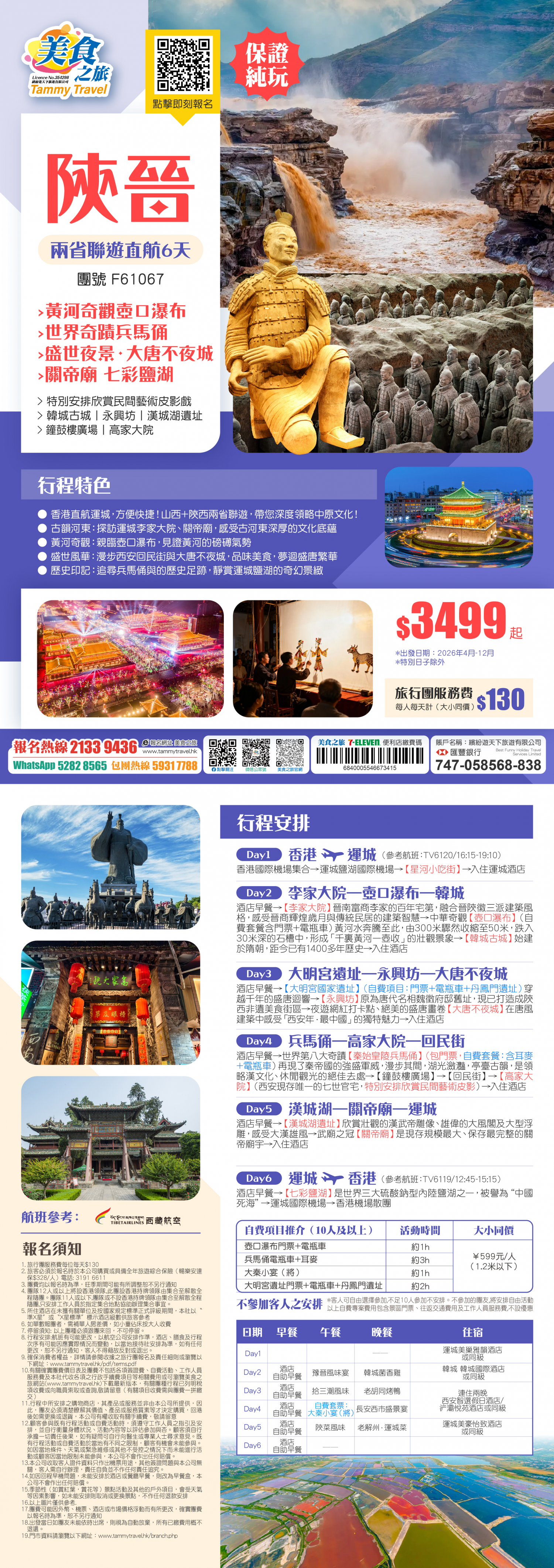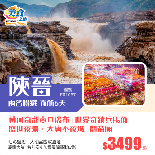 香港直航【純玩陝西+山西】黃河奇觀·壺口瀑布丨世界奇蹟兵馬俑丨盛世夜景·大唐不夜城丨關帝廟 七彩鹽湖丨大明宮國家遺址 純玩6天