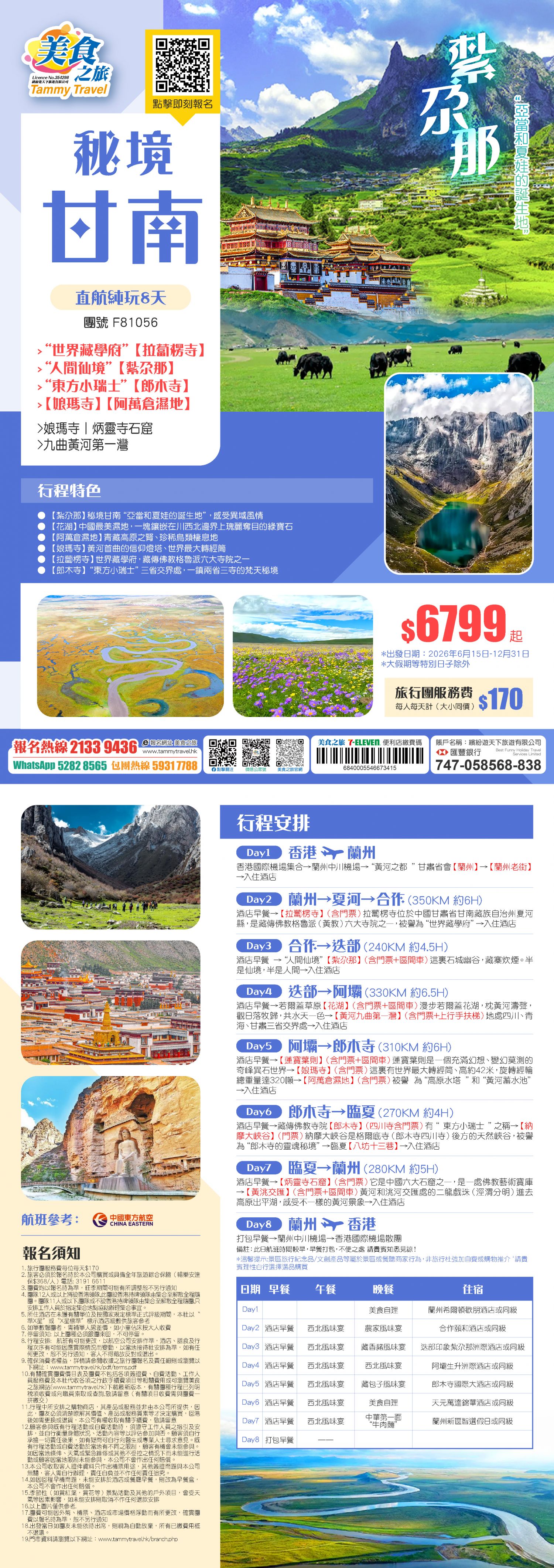 純玩<秘境甘南·夢中香巴拉·魔幻世界·藏族風情>紮尕那|蓮寶葉則|郎木寺|阿萬倉濕地丨納摩大峽谷丨拉蔔楞寺|黃河九曲第一灣|若爾蓋草原花湖 香港直航8天