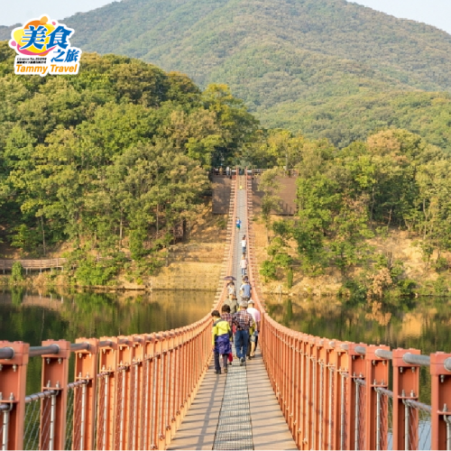 秋天專屬的綠黃橙紅倒映湖面【坡州馬場湖水吊橋】