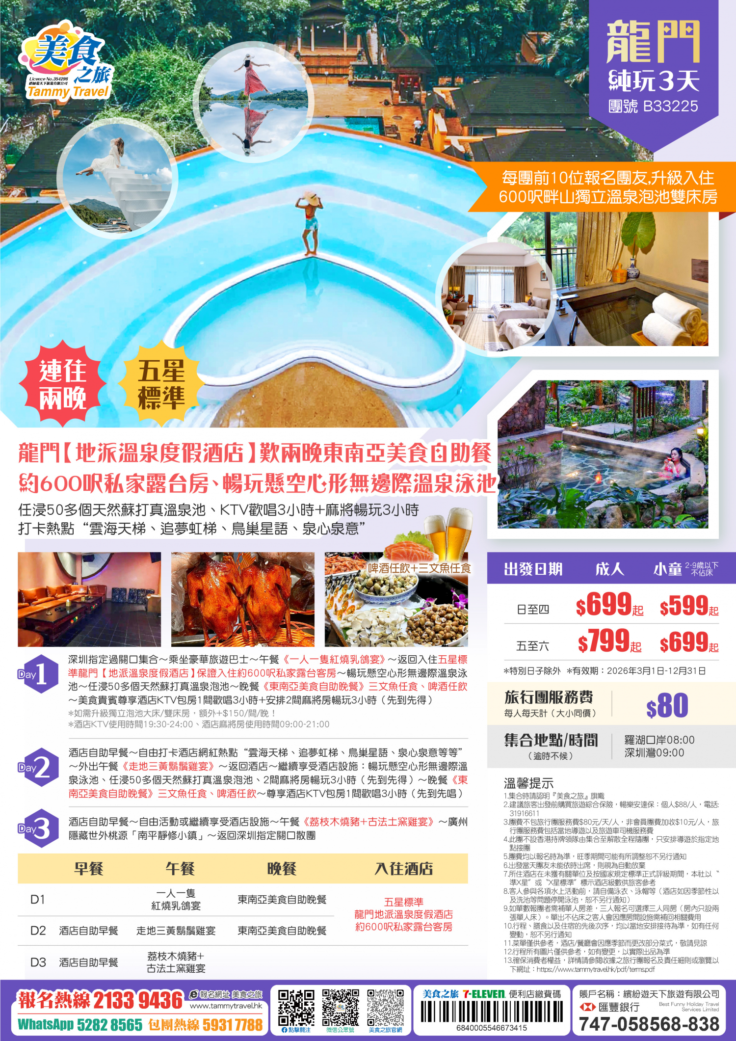 5.非香港集散一天團, 不列入旅遊業賠償基金及緊急援助保障。本公司強烈建議顧客出發前購買旅遊保險,以獲得更全面的旅遊保障。