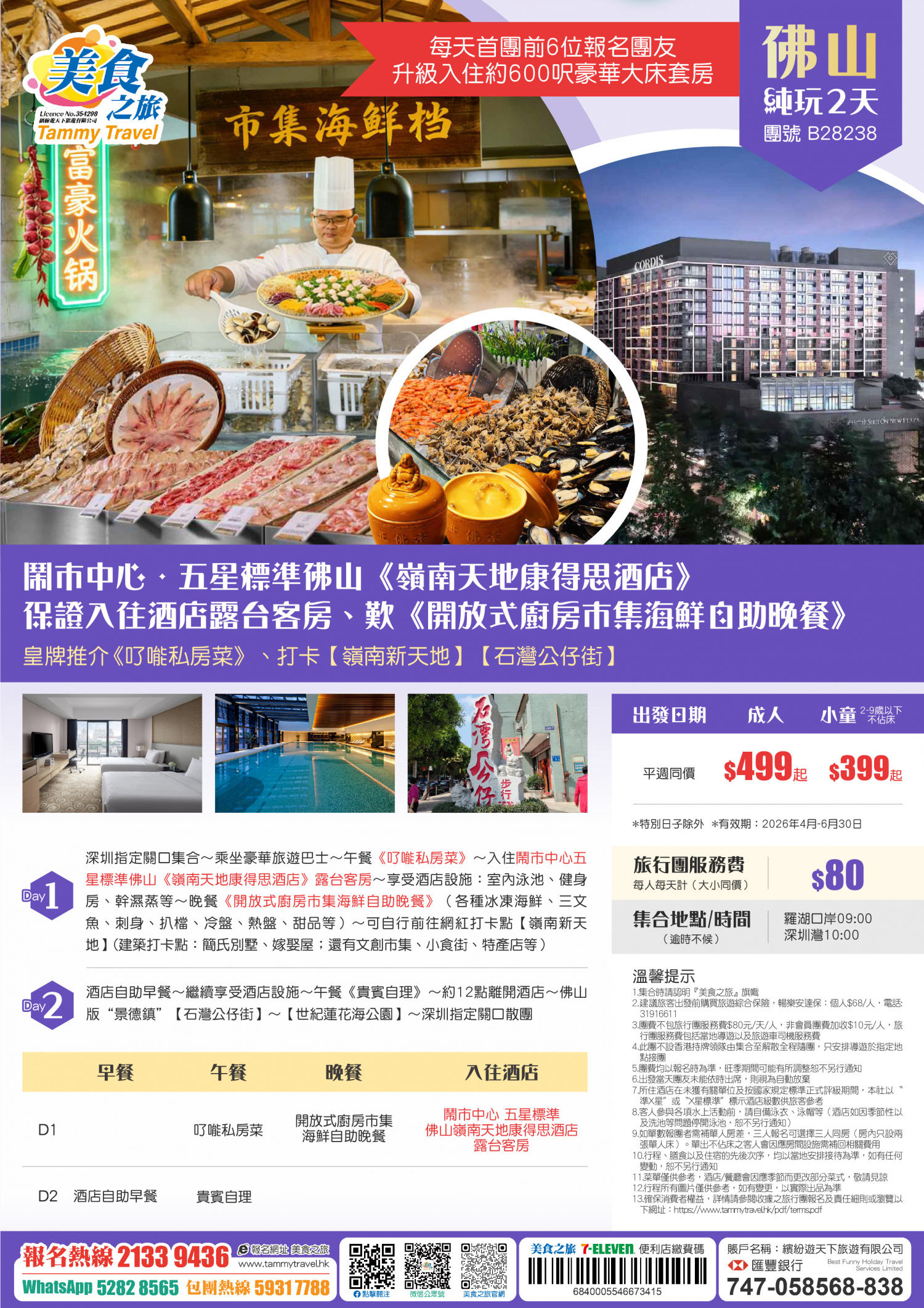 5.非香港集散一天團, 不列入旅遊業賠償基金及緊急援助保障。本公司強烈建議顧客出發前購買旅遊保險,以獲得更全面的旅遊保障。