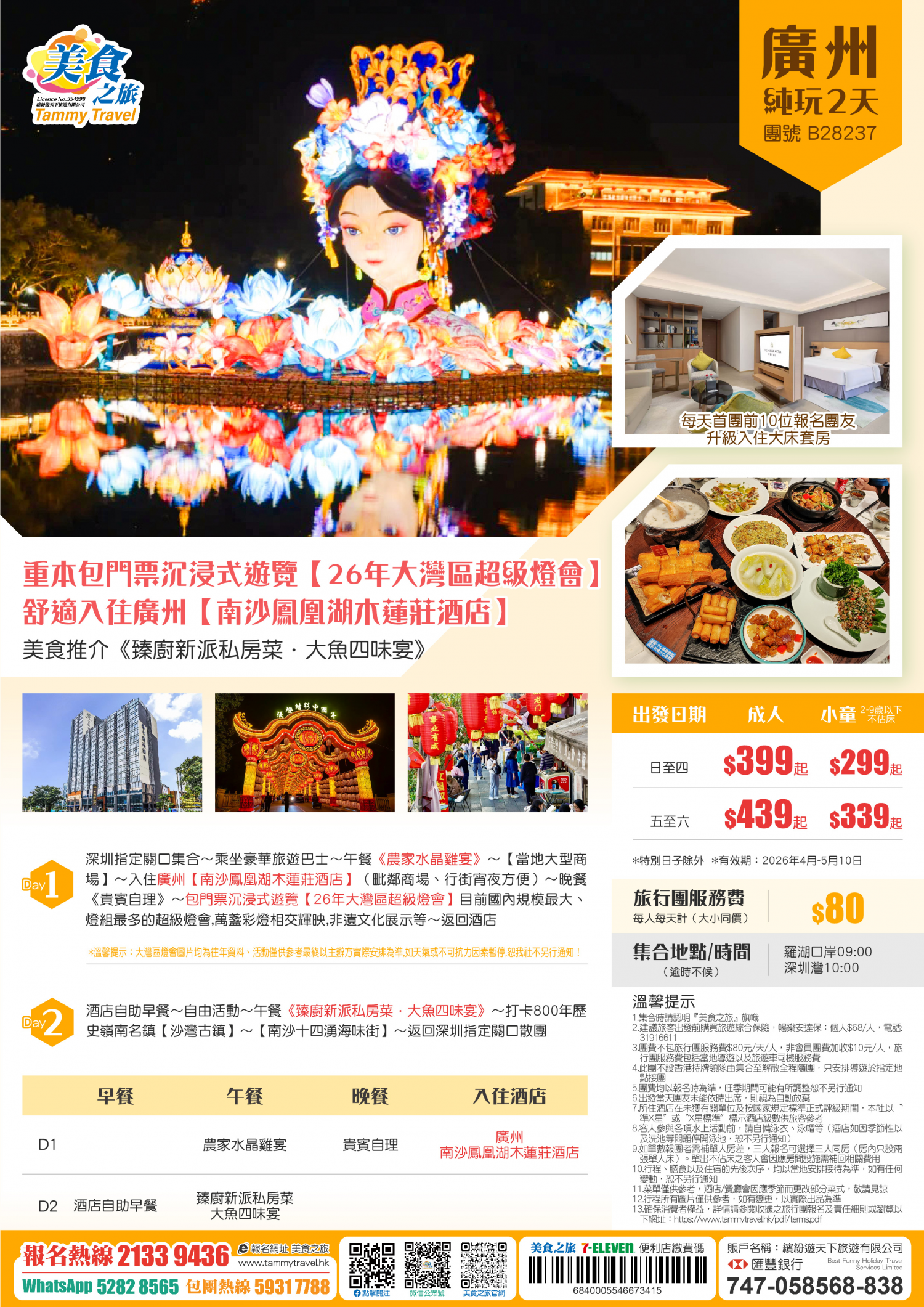 5.非香港集散一天團, 不列入旅遊業賠償基金及緊急援助保障。本公司強烈建議顧客出發前購買旅遊保險,以獲得更全面的旅遊保障。