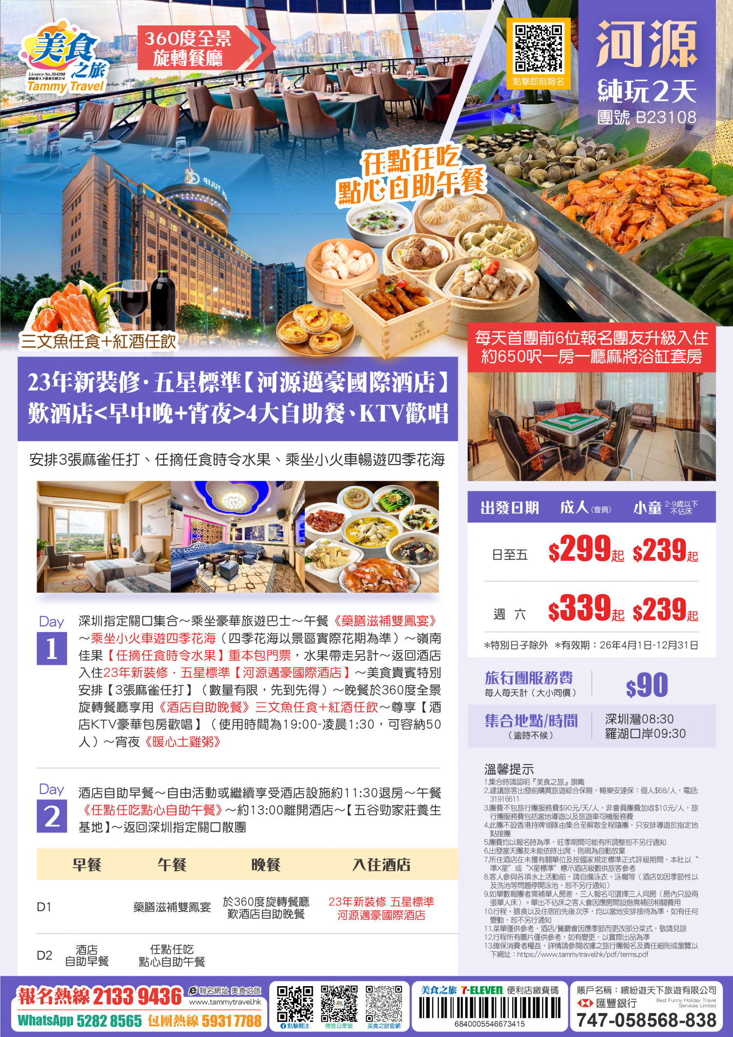5.非香港集散一天團, 不列入旅遊業賠償基金及緊急援助保障。本公司強烈建議顧客出發前購買旅遊保險,以獲得更全面的旅遊保障。