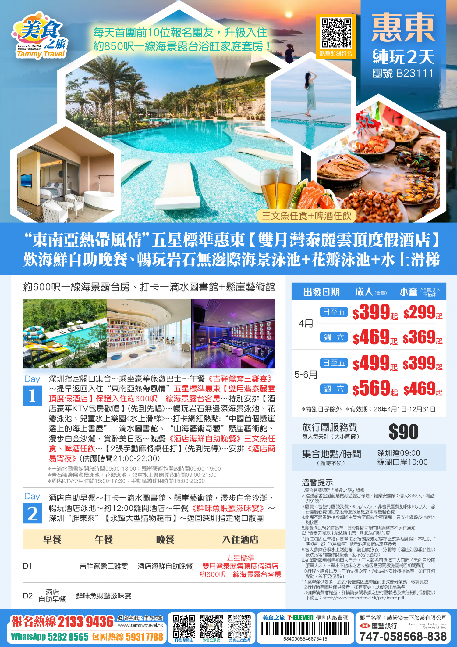 5.非香港集散一天團, 不列入旅遊業賠償基金及緊急援助保障。本公司強烈建議顧客出發前購買旅遊保險,以獲得更全面的旅遊保障。