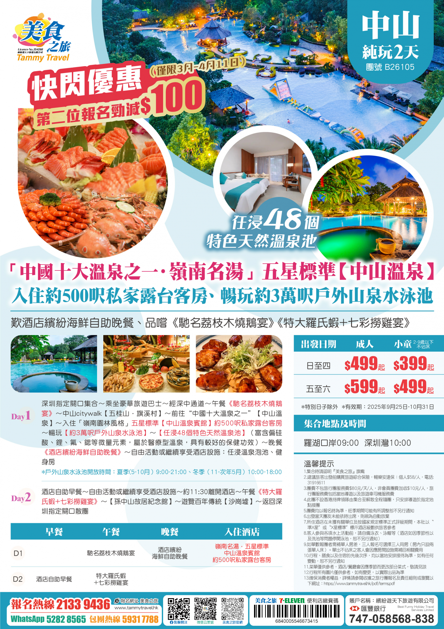 5.非香港集散一天團, 不列入旅遊業賠償基金及緊急援助保障。本公司強烈建議顧客出發前購買旅遊保險,以獲得更全面的旅遊保障。