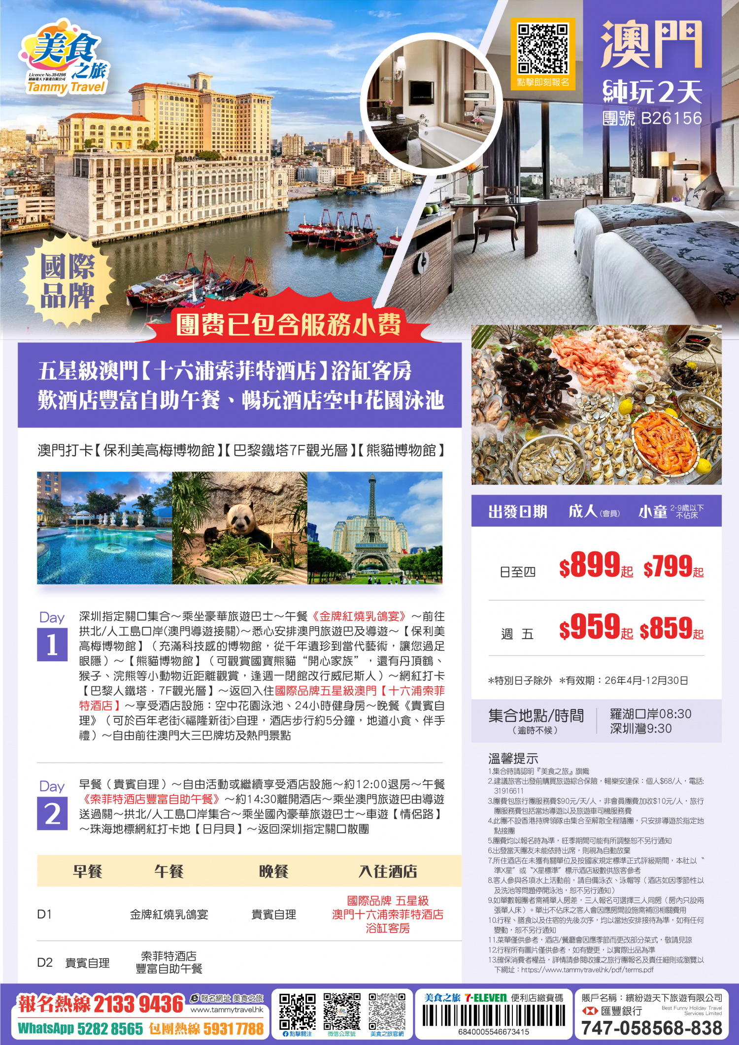 5.非香港集散一天團, 不列入旅遊業賠償基金及緊急援助保障。本公司強烈建議顧客出發前購買旅遊保險,以獲得更全面的旅遊保障。