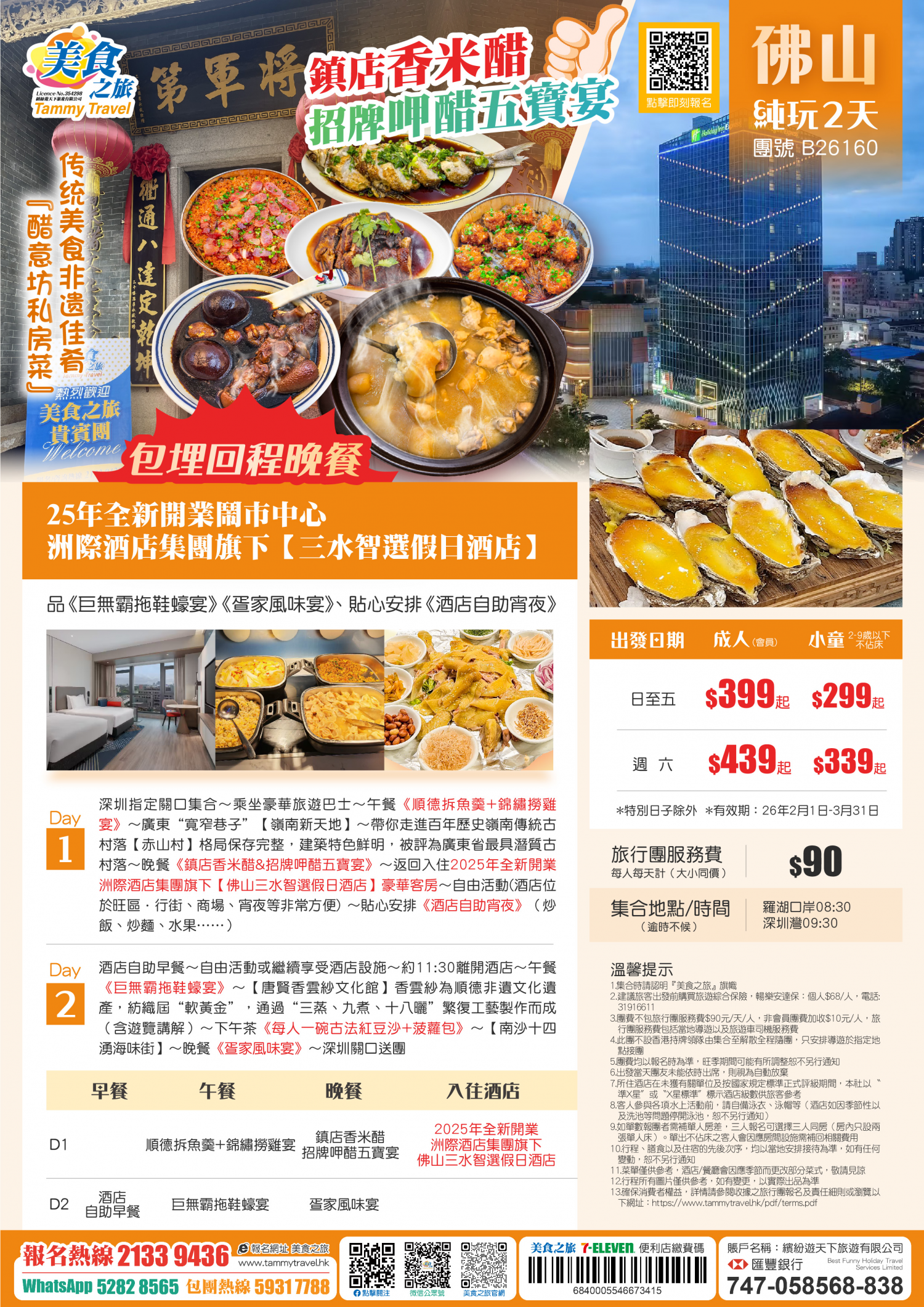 【包回程晚餐】鬧市中心·25年全新開業·洲際酒店集團旗下【三水智選假日酒店】 傳統美食非遺佳餚『醋意坊私房菜』鎮店香米醋&招牌呷醋五寶宴、品《巨無霸拖鞋蠔宴》、貼心安排《酒店自助宵夜》純玩2天