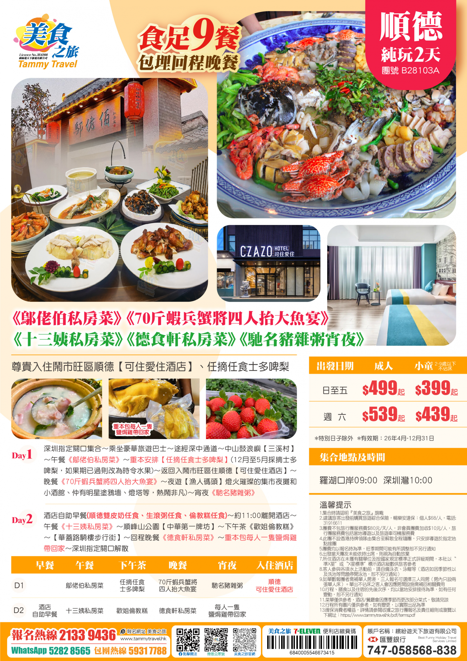 5.個別線路之訂金收費將按交通服務供應商收取之訂金費用或旺季日期指引為準, 並作出調整; 請詳閱行程表備註或收據備註。