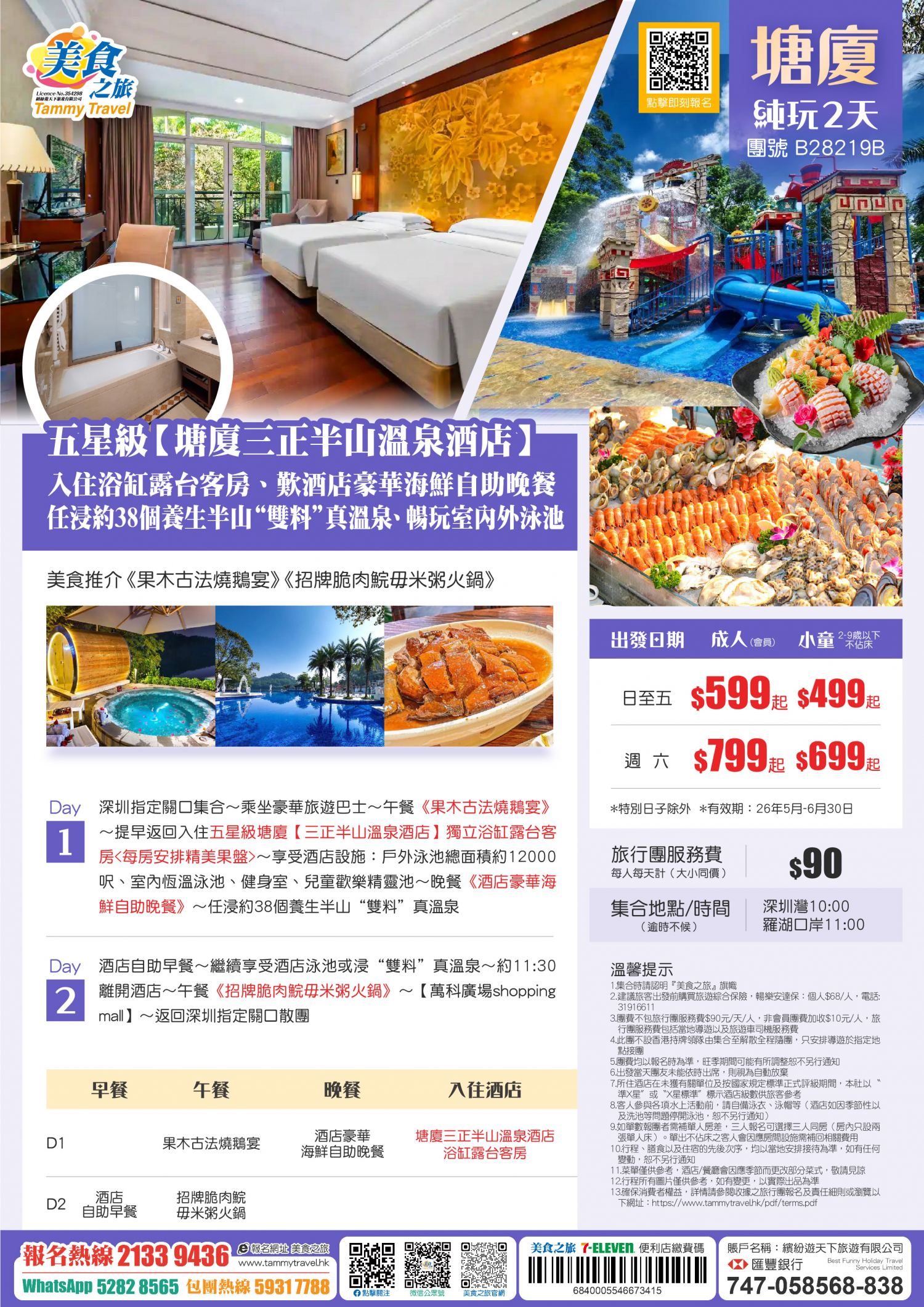5.非香港集散一天團, 不列入旅遊業賠償基金及緊急援助保障。本公司強烈建議顧客出發前購買旅遊保險,以獲得更全面的旅遊保障。
