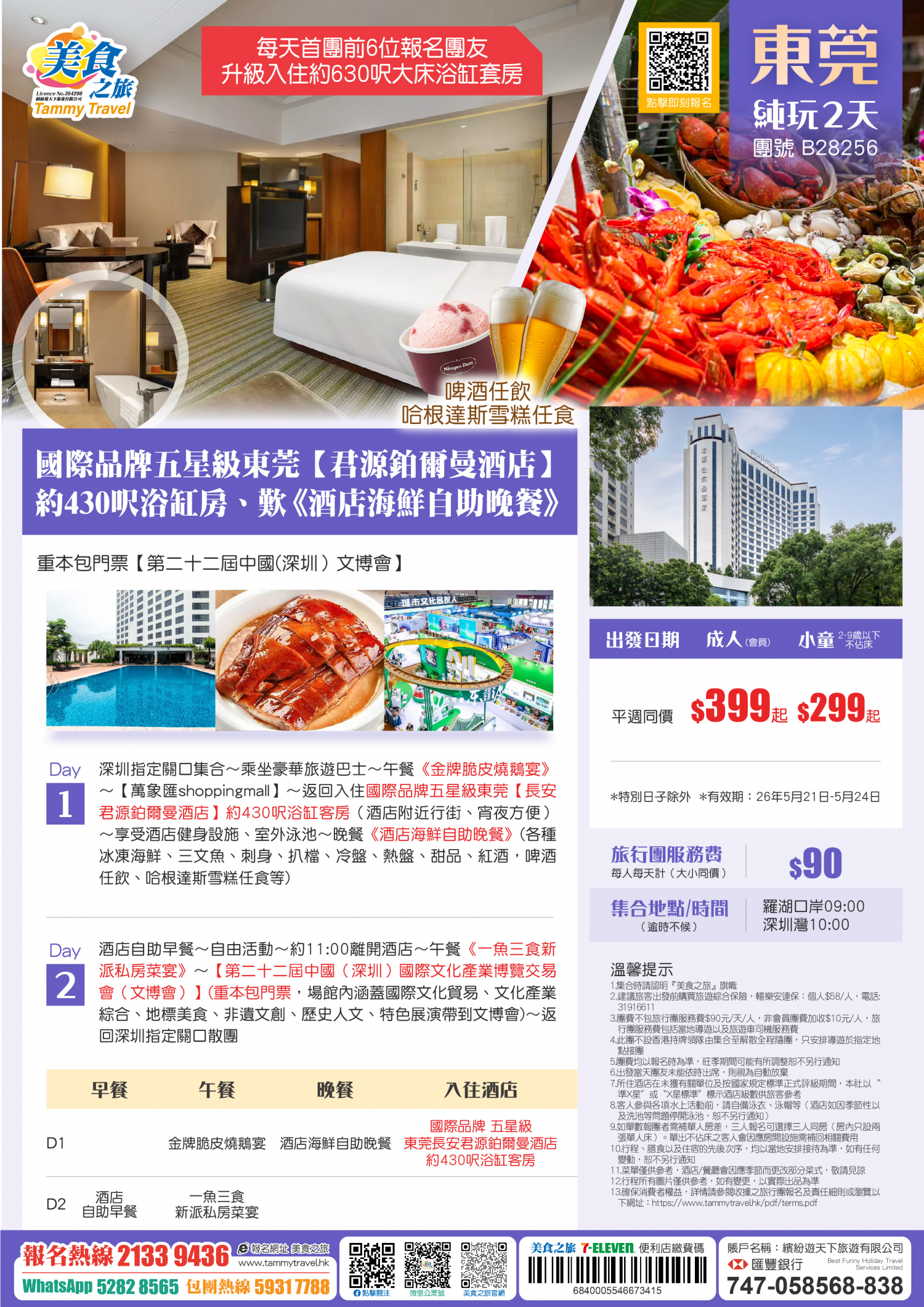 5.非香港集散一天團, 不列入旅遊業賠償基金及緊急援助保障。本公司強烈建議顧客出發前購買旅遊保險,以獲得更全面的旅遊保障。