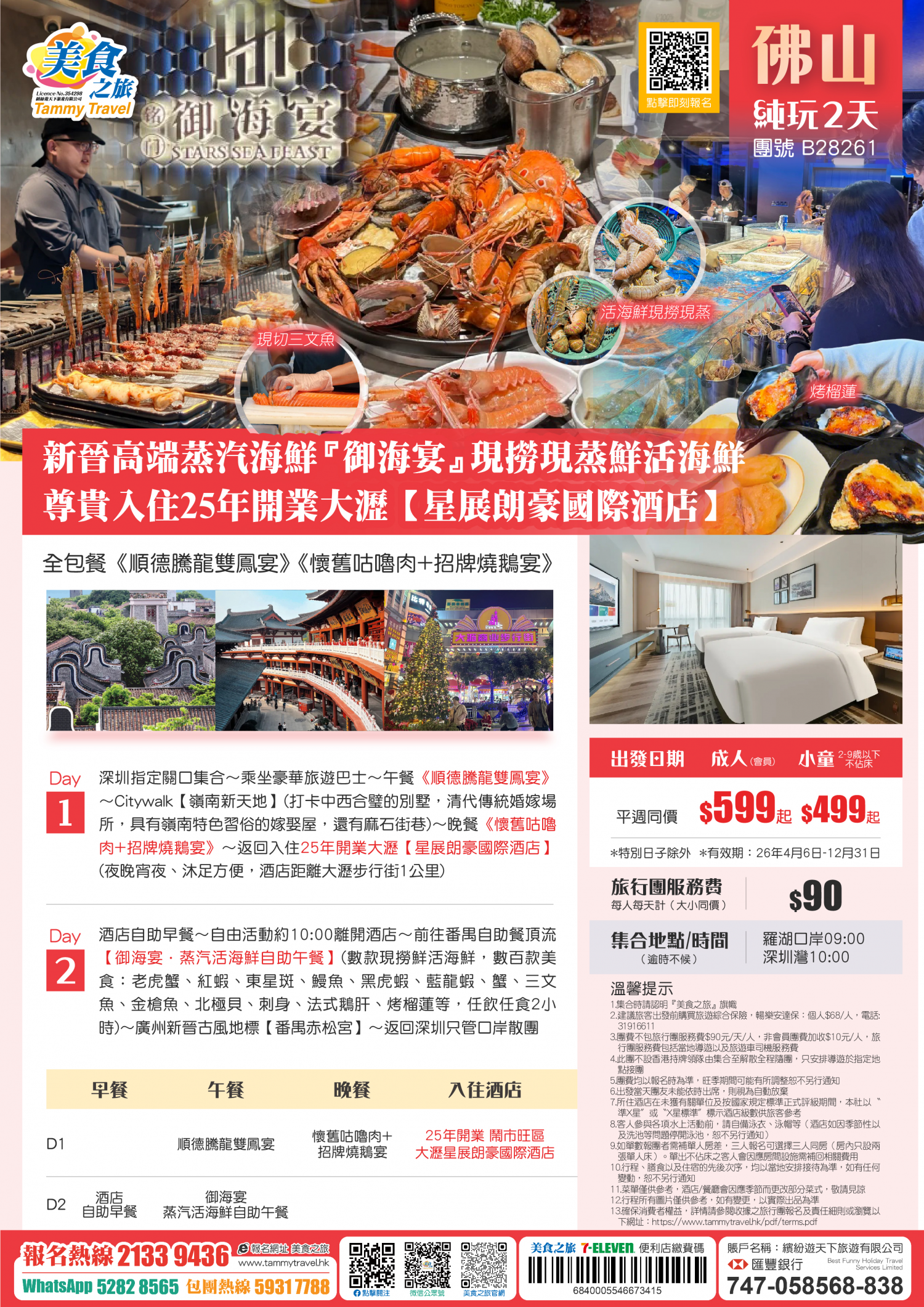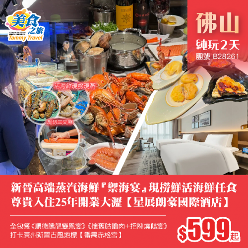 新晉高端蒸汽海鮮『御海宴』現撈現蒸鮮活海鮮、品嚐《順德騰龍雙鳳宴》《懷舊咕嚕肉+招牌燒鵝宴》、入住25年開業大瀝【星展朗豪國際酒店】純玩2天