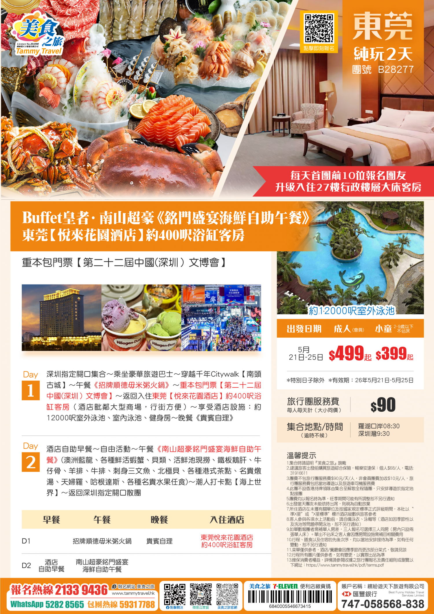 5.非香港集散一天團, 不列入旅遊業賠償基金及緊急援助保障。本公司強烈建議顧客出發前購買旅遊保險,以獲得更全面的旅遊保障。