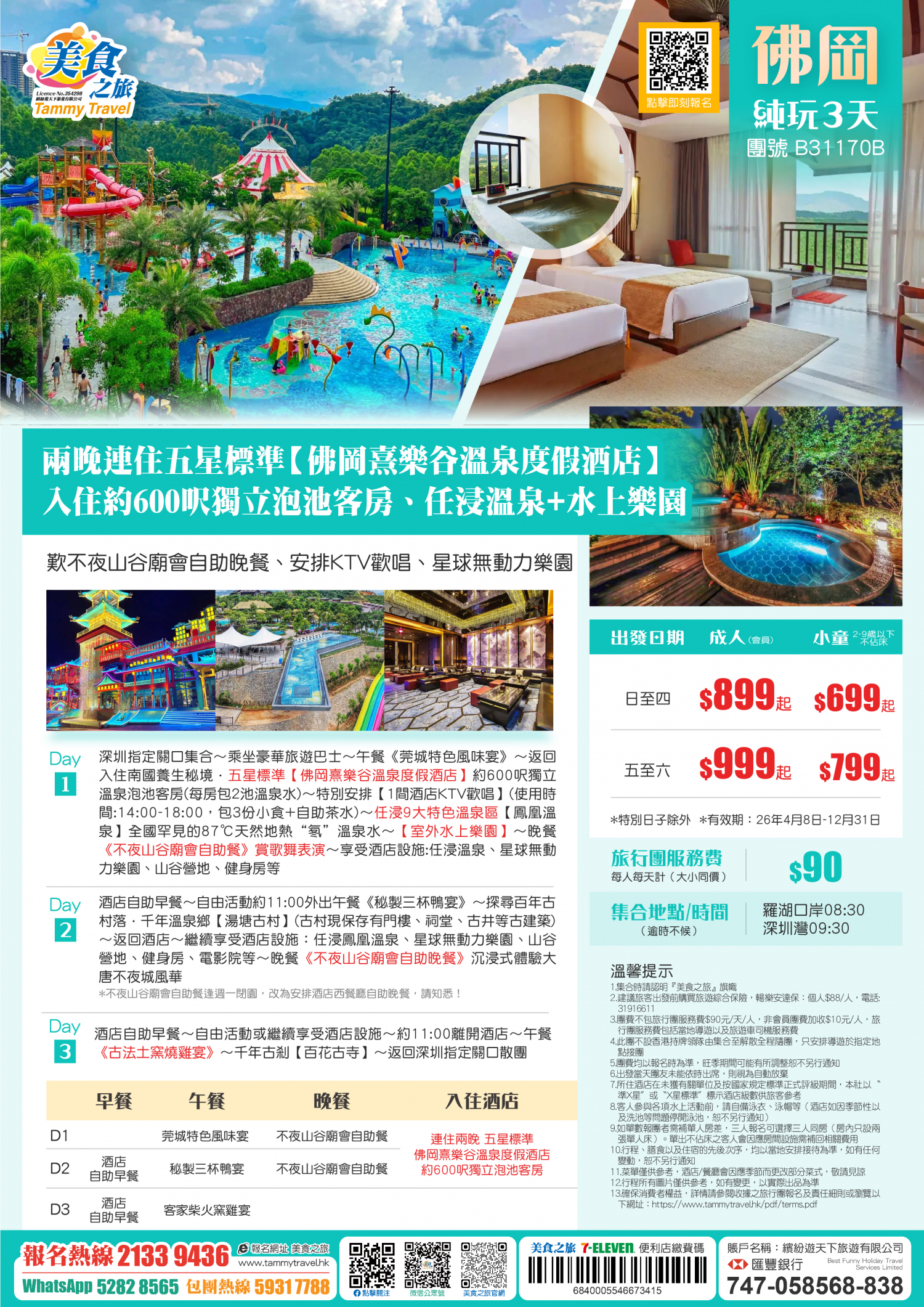5.非香港集散一天團, 不列入旅遊業賠償基金及緊急援助保障。本公司強烈建議顧客出發前購買旅遊保險,以獲得更全面的旅遊保障。
