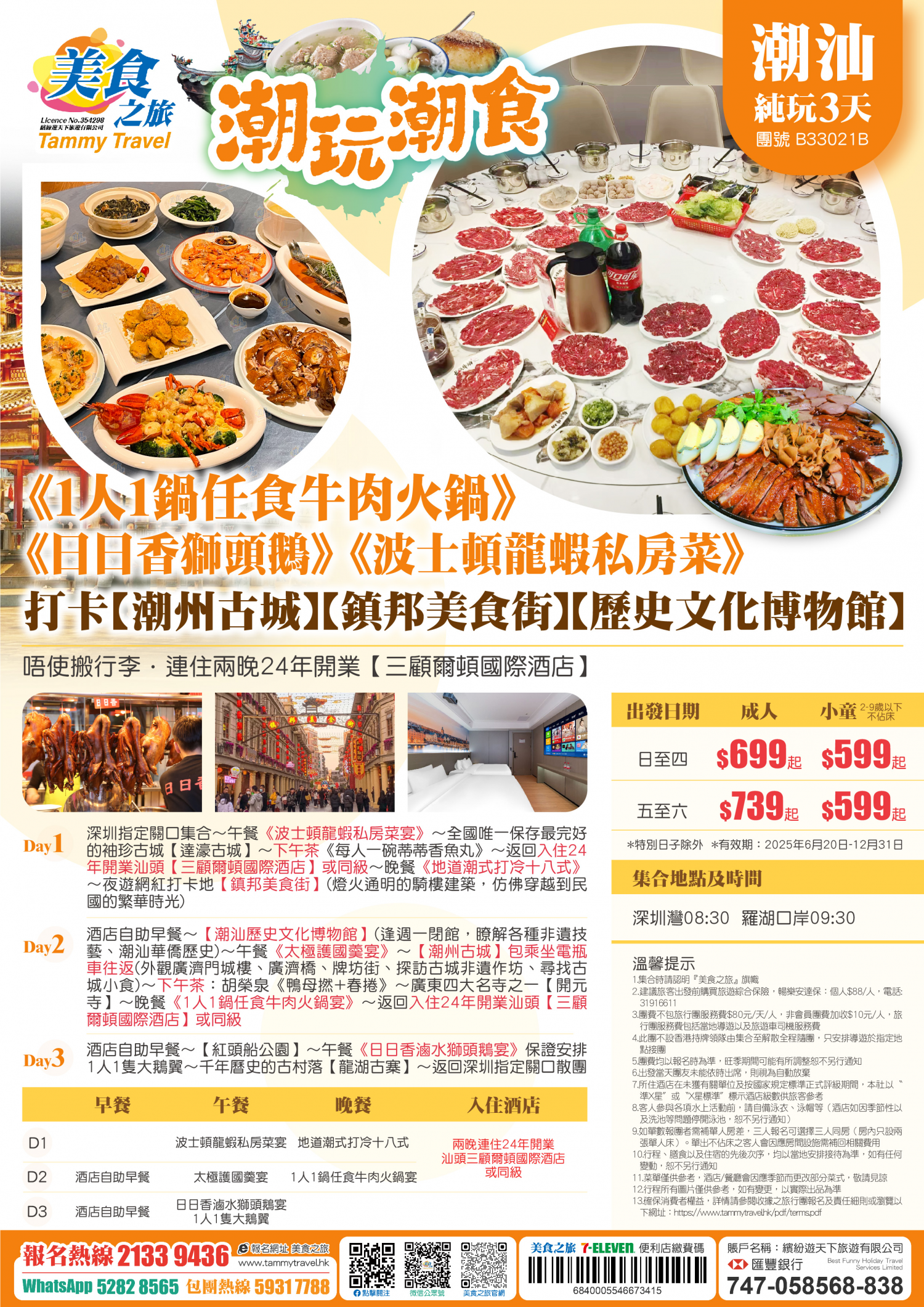 5.非香港集散一天團, 不列入旅遊業賠償基金及緊急援助保障。本公司強烈建議顧客出發前購買旅遊保險,以獲得更全面的旅遊保障。