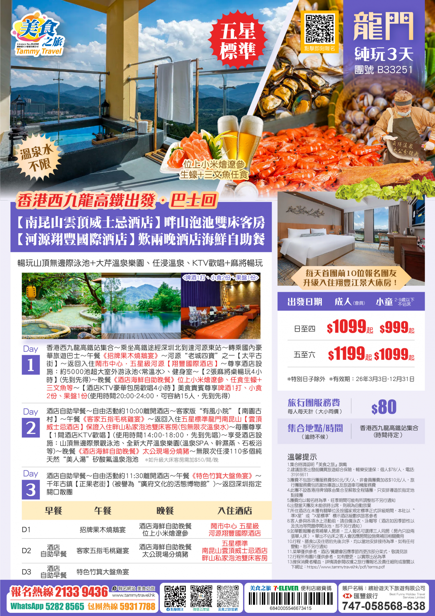 5.非香港集散一天團, 不列入旅遊業賠償基金及緊急援助保障。本公司強烈建議顧客出發前購買旅遊保險,以獲得更全面的旅遊保障。