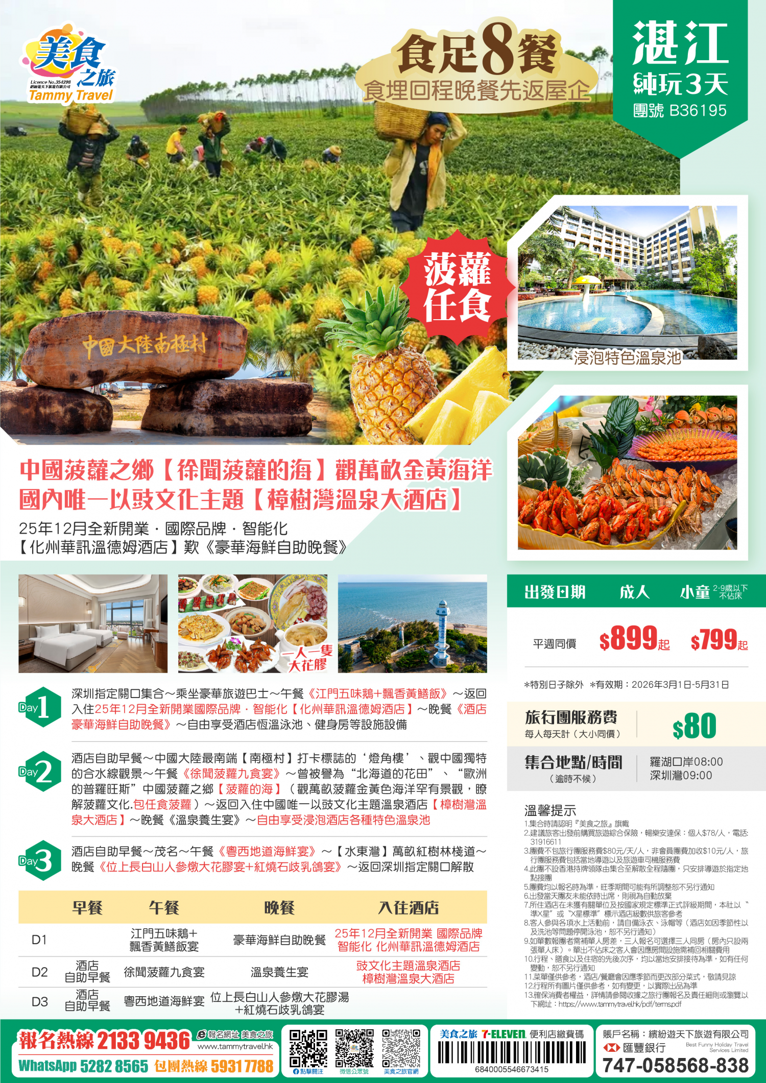 中國菠蘿之鄉【徐聞菠蘿的海】觀萬畝金黃海洋、 國內唯一以豉文化主題【樟樹灣溫泉大酒店】、 25年12月全新開業·國際品牌·智能化【化州華訊溫德姆酒店】歎《豪華海鮮自助晚餐》 純玩3天