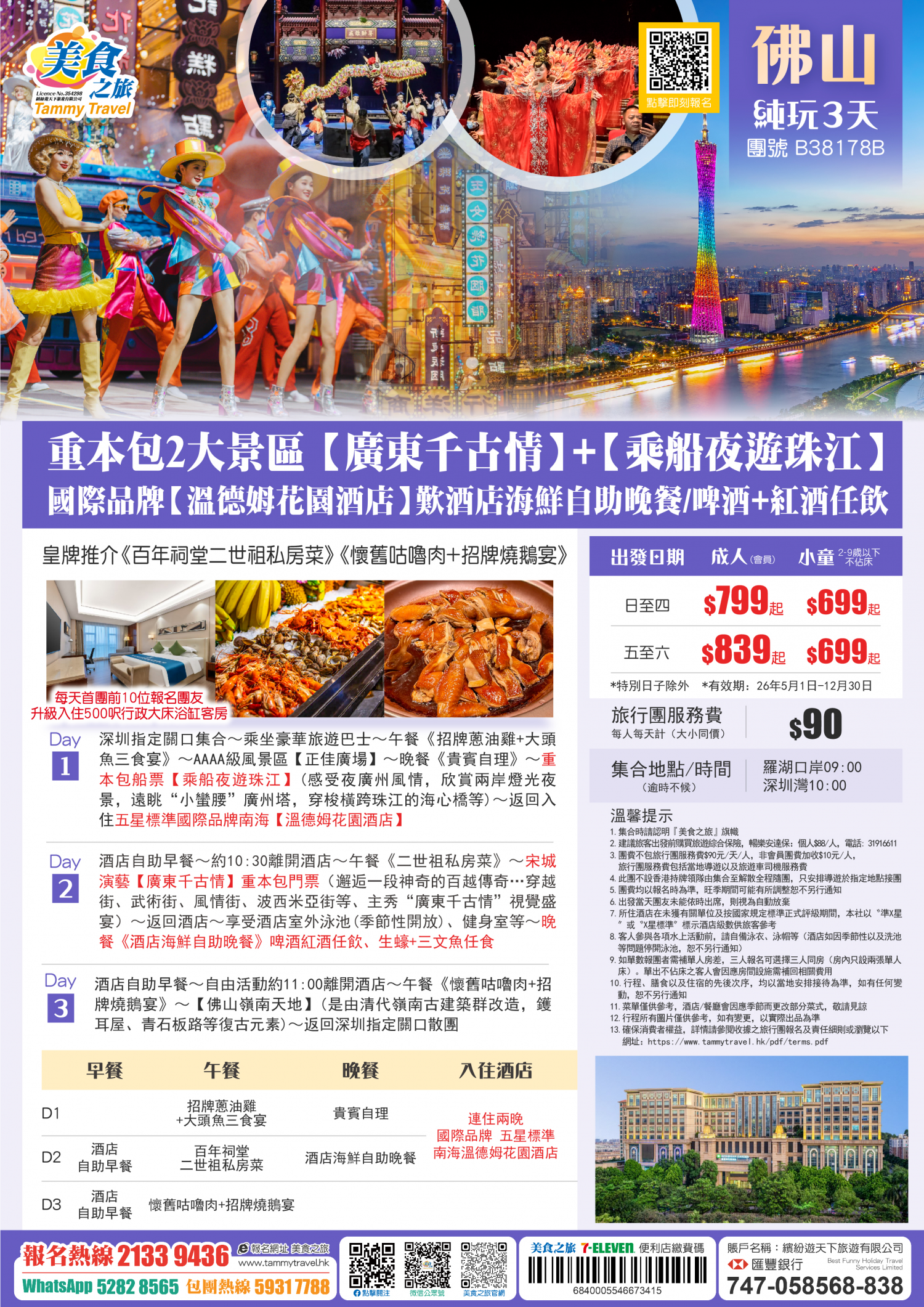 5.非香港集散一天團, 不列入旅遊業賠償基金及緊急援助保障。本公司強烈建議顧客出發前購買旅遊保險,以獲得更全面的旅遊保障。