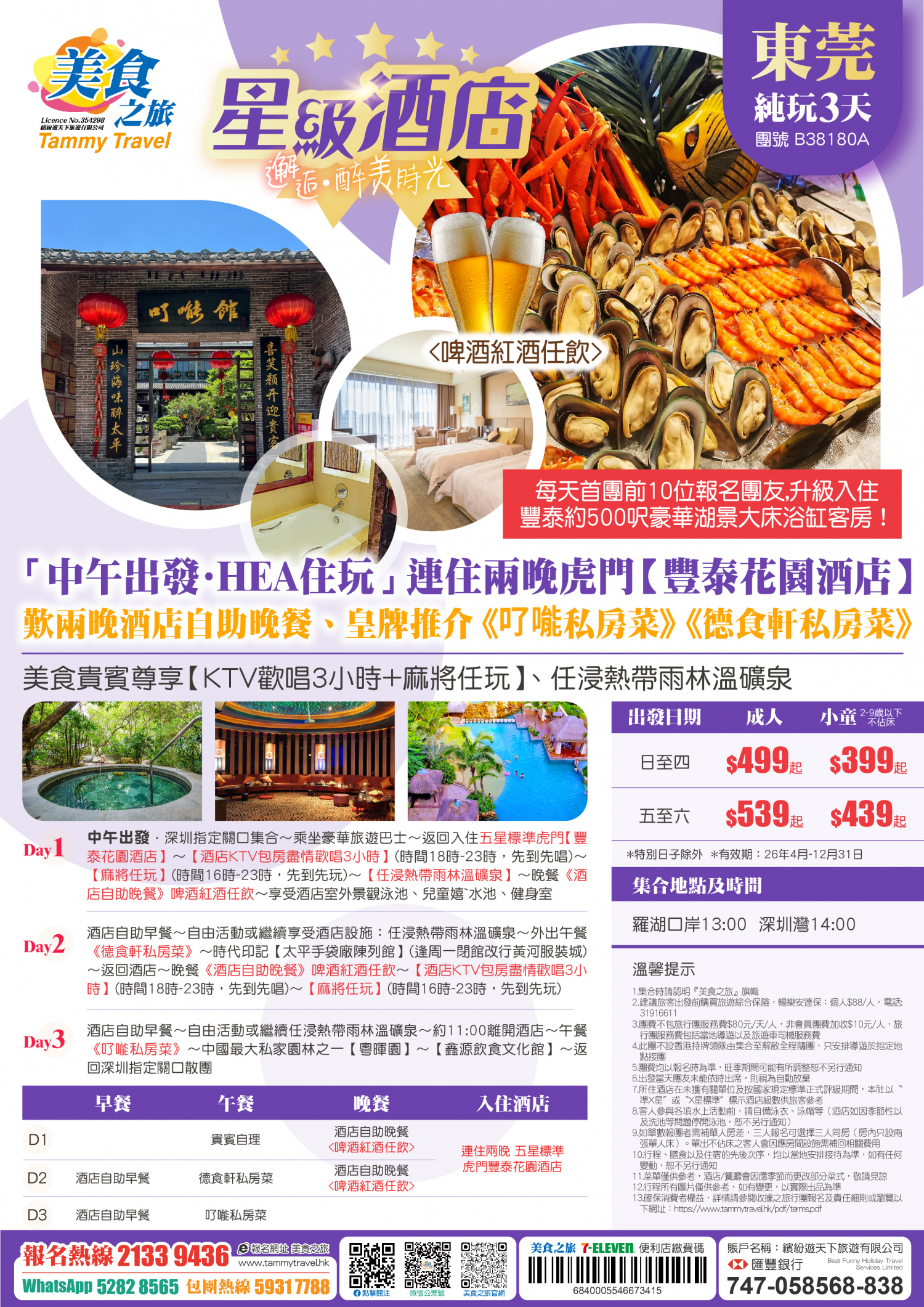 5.非香港集散一天團, 不列入旅遊業賠償基金及緊急援助保障。本公司強烈建議顧客出發前購買旅遊保險,以獲得更全面的旅遊保障。