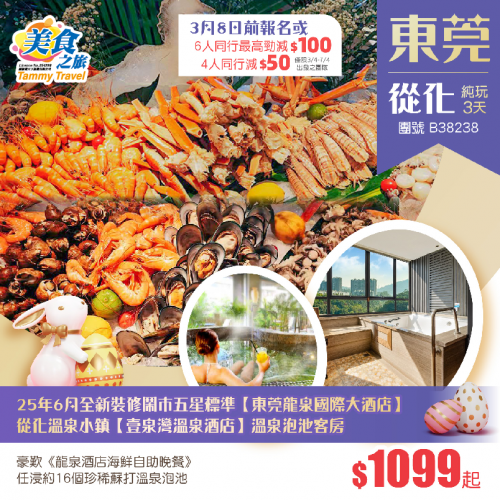 3.8前報短線復活節加班線/晚會系列即減$100/位
