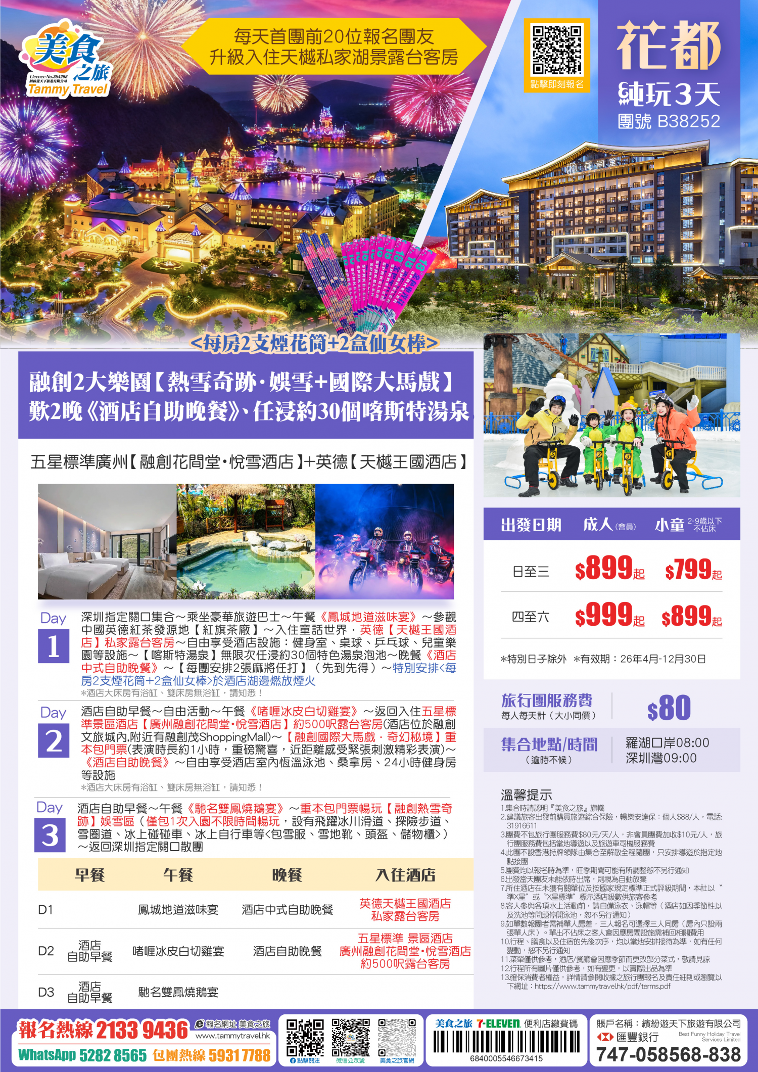 5.非香港集散一天團, 不列入旅遊業賠償基金及緊急援助保障。本公司強烈建議顧客出發前購買旅遊保險,以獲得更全面的旅遊保障。
