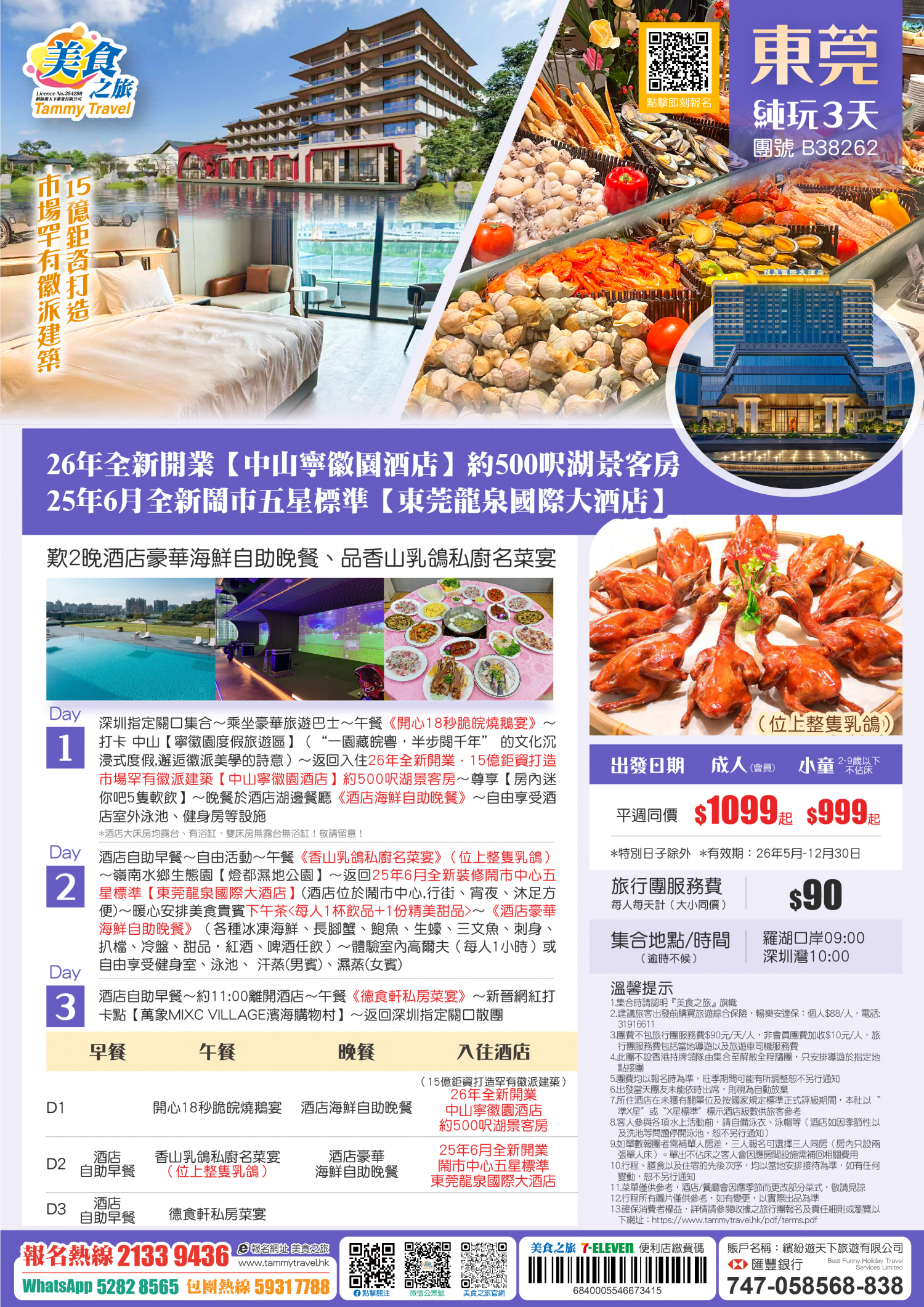 5.非香港集散一天團, 不列入旅遊業賠償基金及緊急援助保障。本公司強烈建議顧客出發前購買旅遊保險,以獲得更全面的旅遊保障。