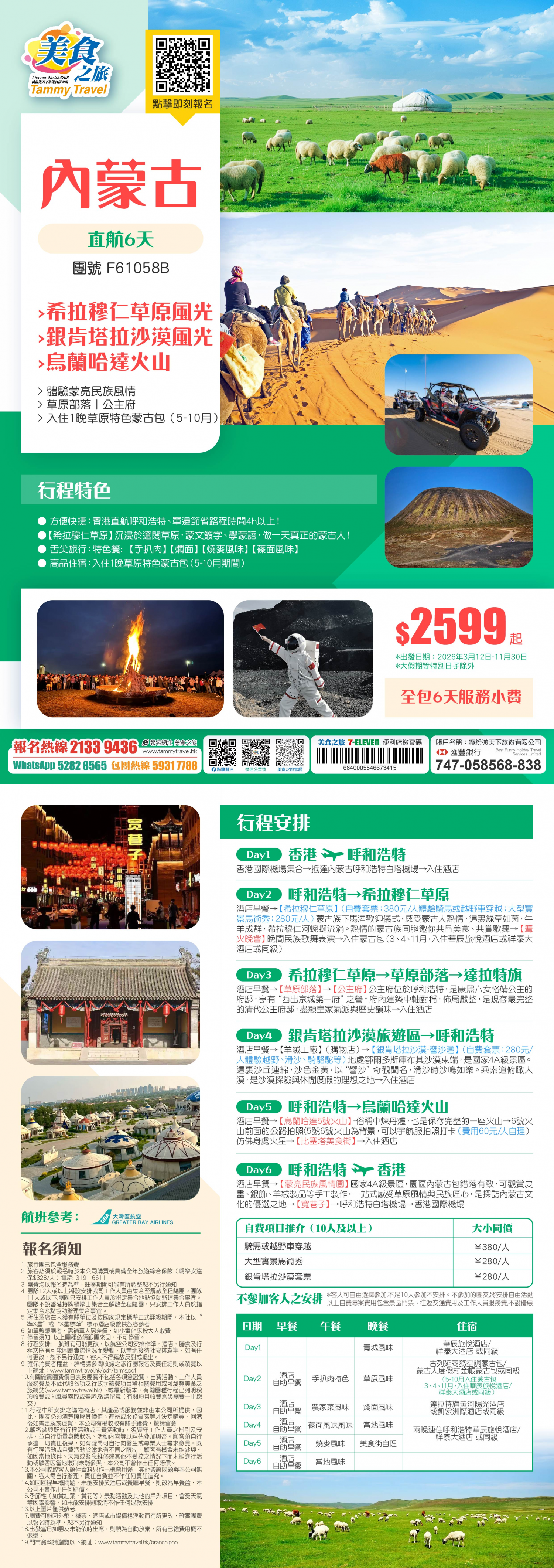 ● 方便快捷:香港直航呼和浩特、單邊節省路程時間4H以上,全包小費!