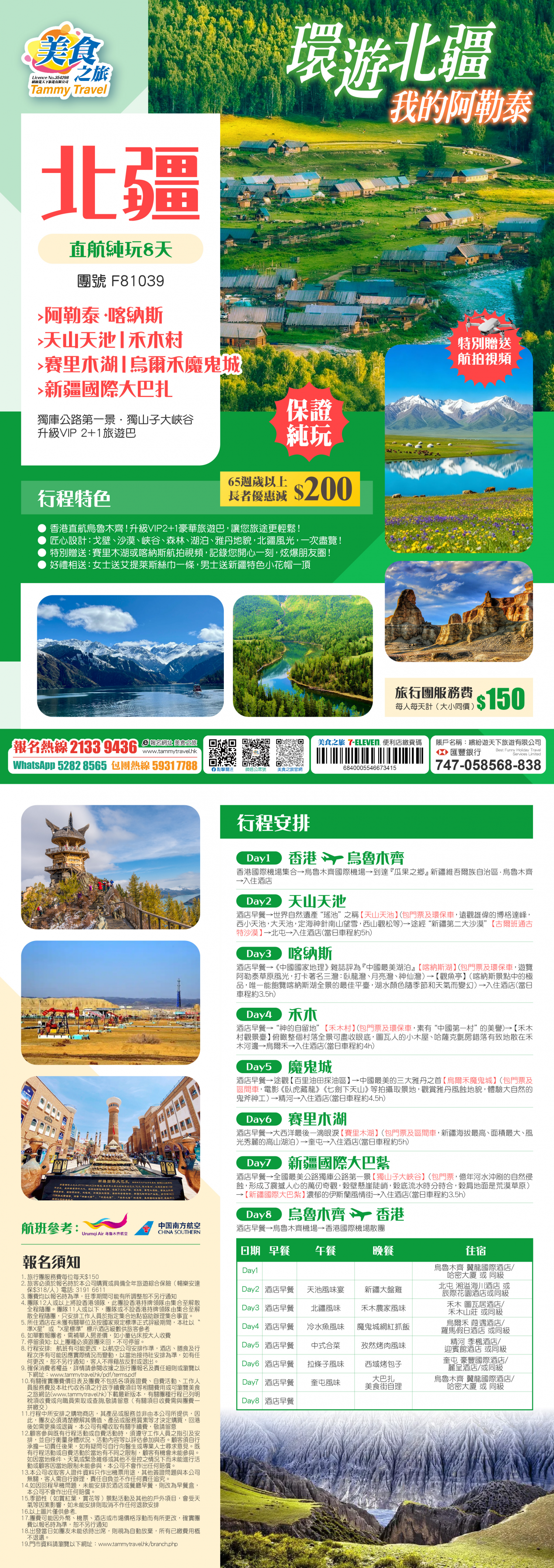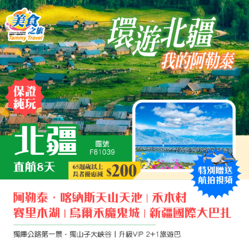 * 香港直航烏魯木齊!升級VIP2+1豪華旅遊巴,讓您旅途更輕鬆!