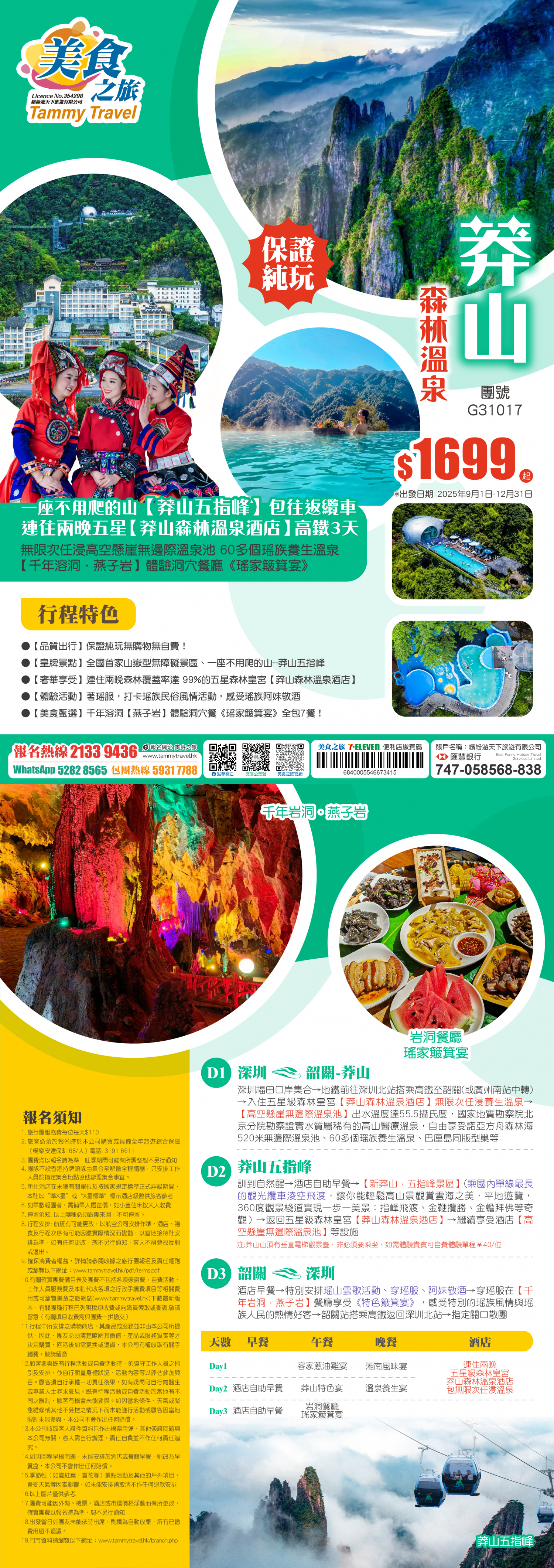 5.非香港集散一天團, 不列入旅遊業賠償基金及緊急援助保障。本公司強烈建議顧客出發前購買旅遊保險,以獲得更全面的旅遊保障。