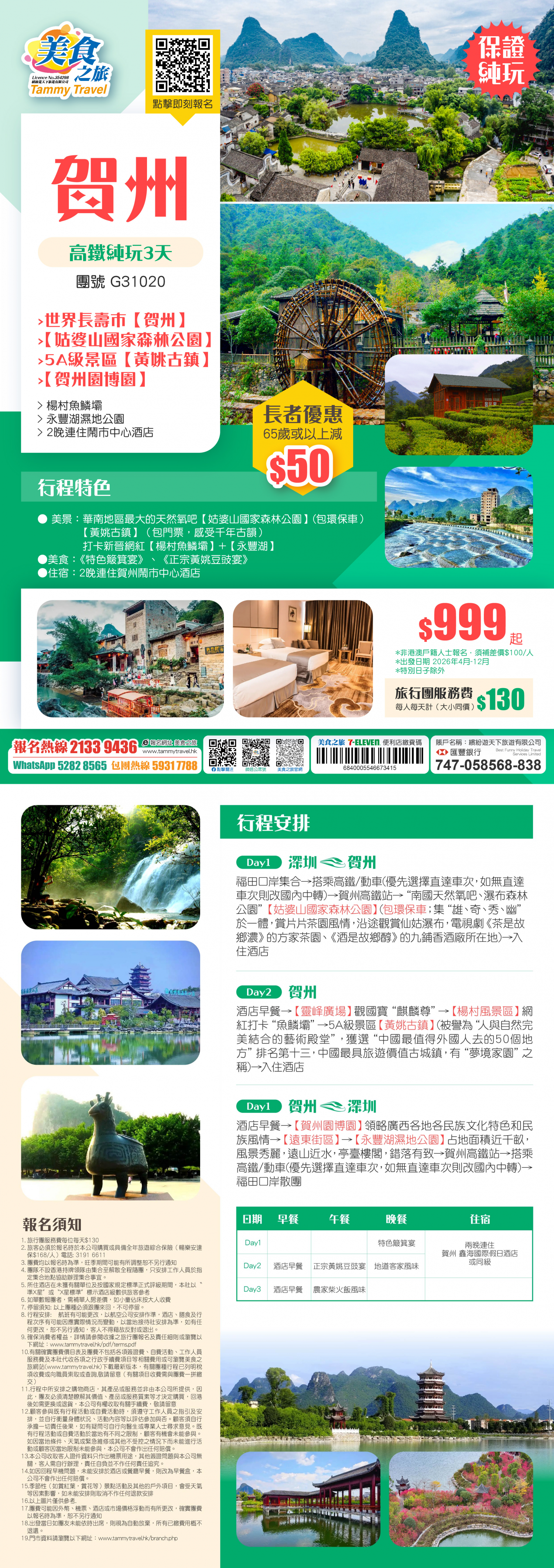 1.*此報名及責任細則只適用於一般廣東省線、中國長線、東南亞線、長線外遊旅行團 , 部分特定旅行團之細則可能略有不同 , 請參照該旅行團之指定條款。