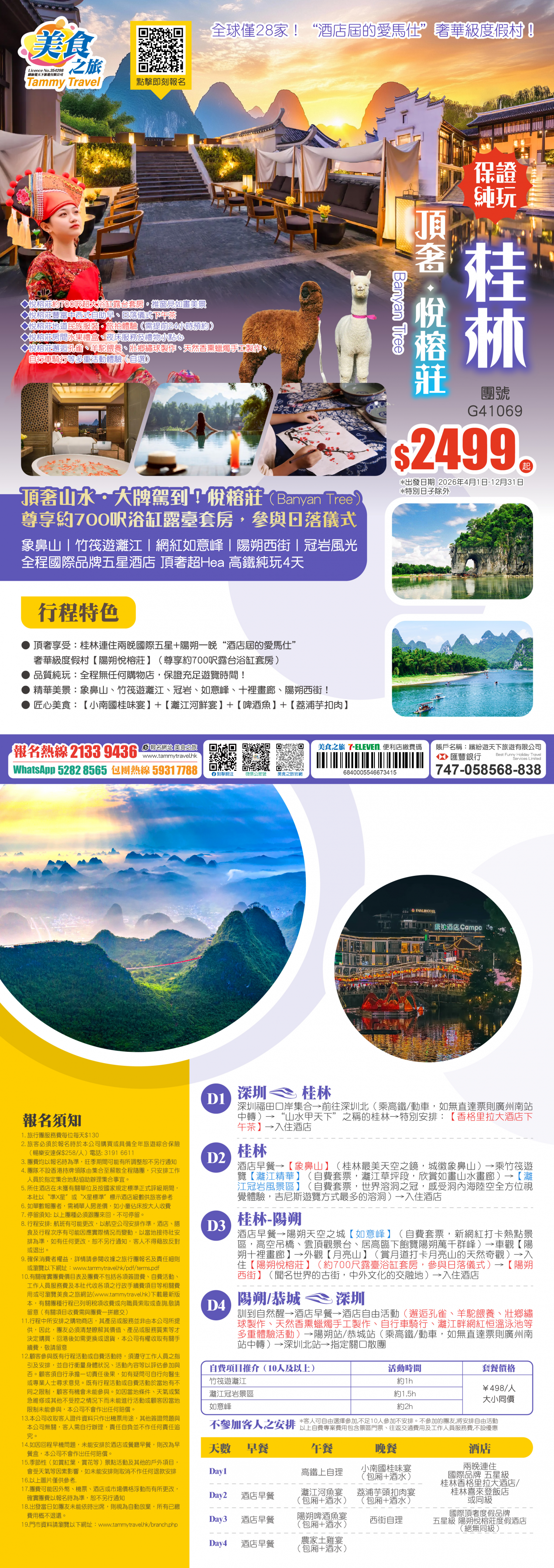 【純玩•桂林頂奢山水•超Hea 】陽朔悅榕莊(Banyan Tree) 尊享約700呎浴缸露臺套房丨 全程國際品牌五星酒店丨象鼻山丨竹筏遊灕江丨網紅如意峰丨陽朔西街丨冠岩風光 高鐵純玩4天