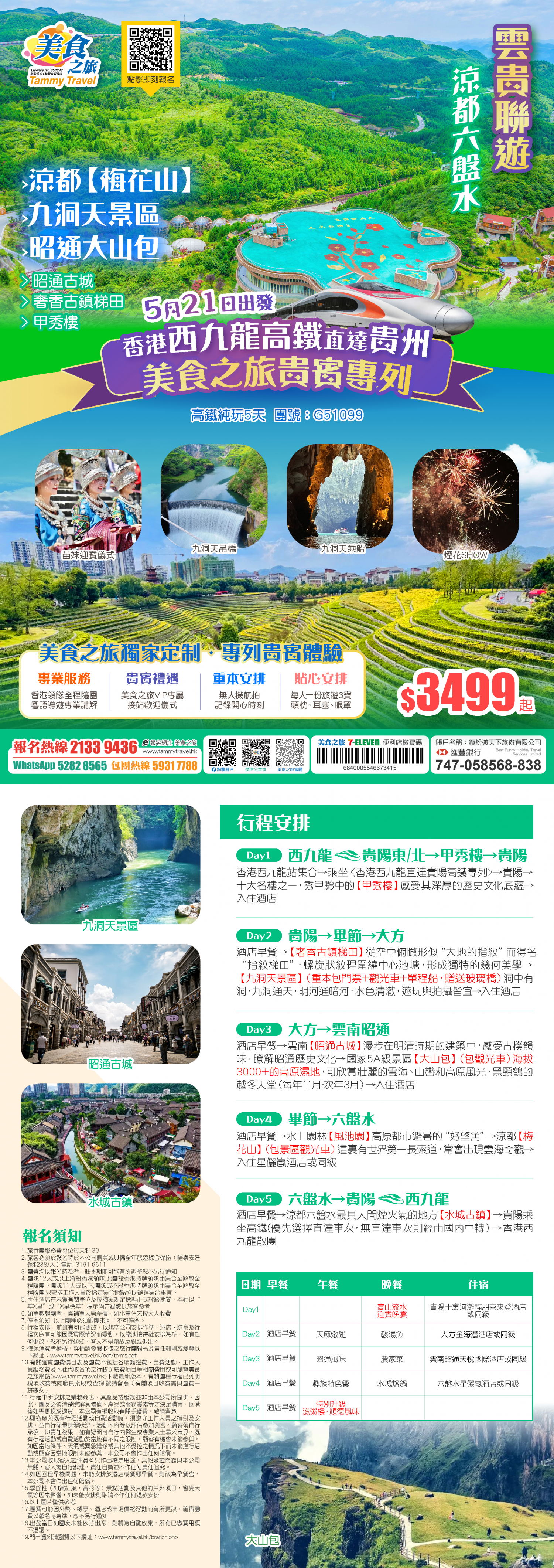 純玩·香港領隊隨團【5月21香港西九龍直達貴州專列·雲貴聯遊】九洞天景區丨涼都六盤水·梅花山丨邵通大山包丨水城古鎮丨邵通古城丨風池園丨無人機記錄開心時刻丨高鐵5天
